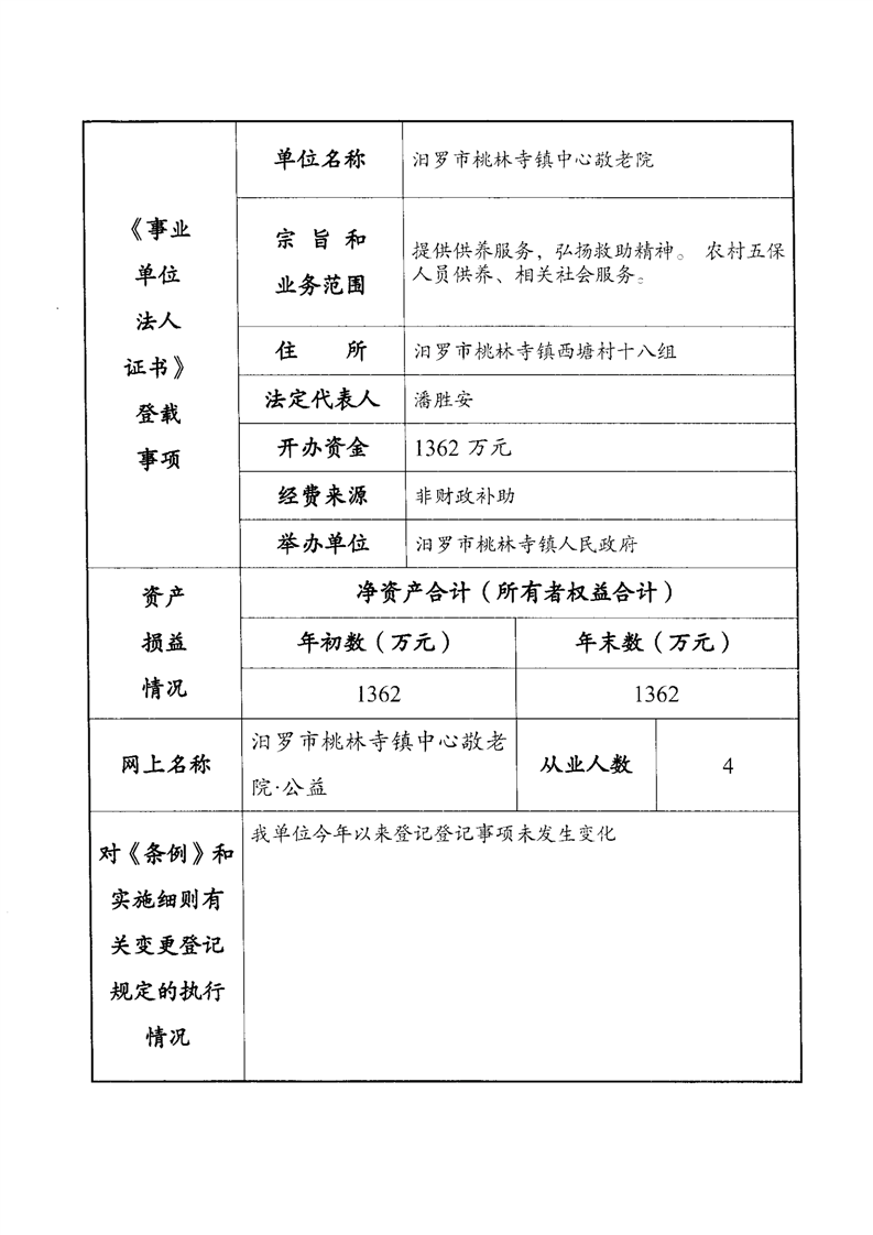 汨罗市桃林寺镇中心敬老院法人年度报告书