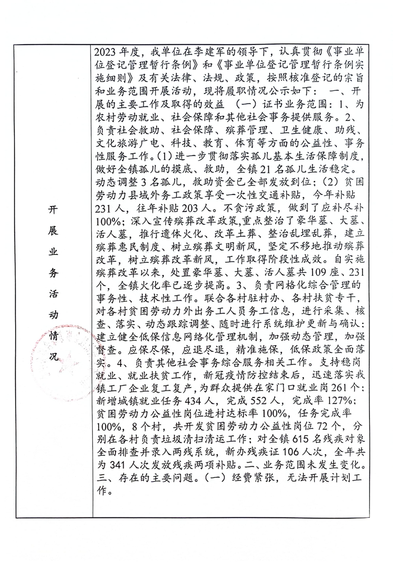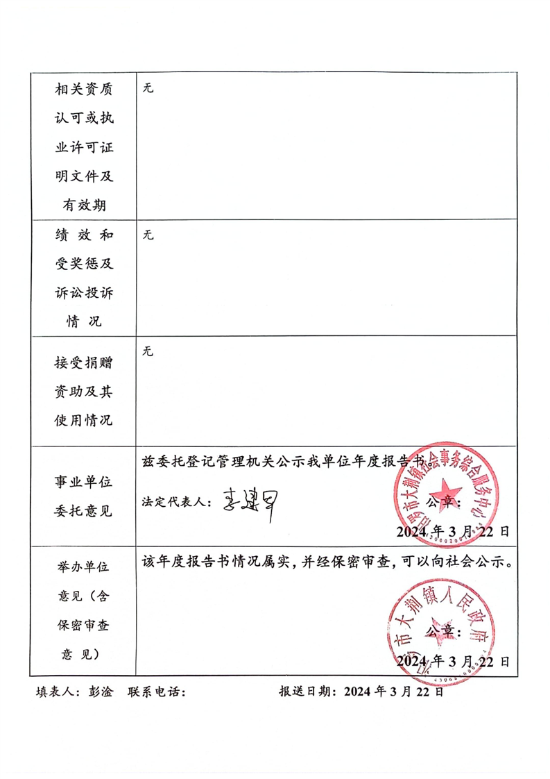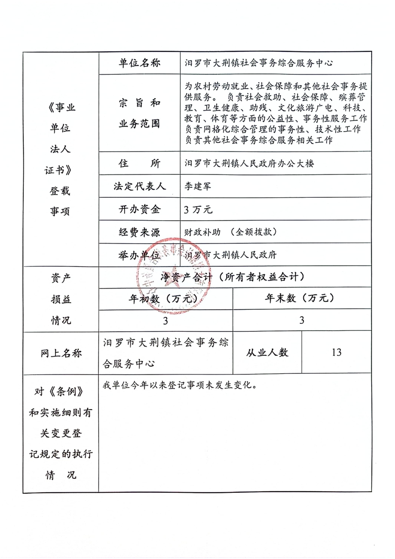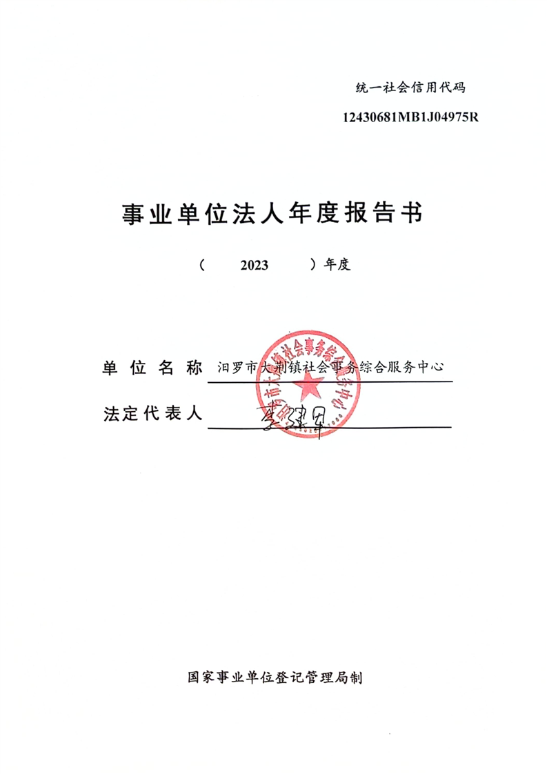 汨罗市大荆镇社会事务综合服务中心2023年度事业单位法人年度报告书