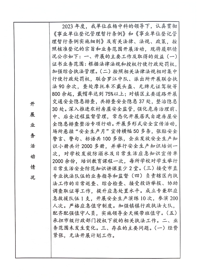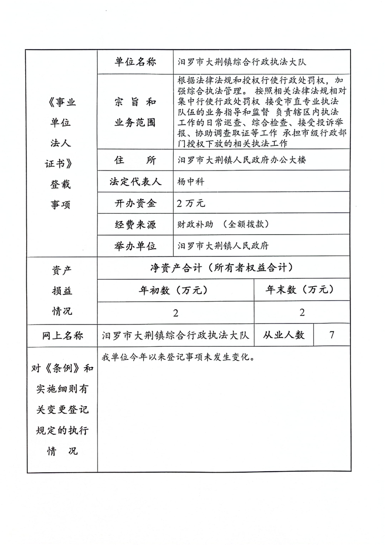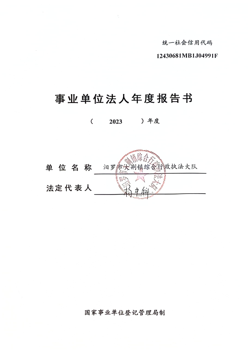 汨罗市大荆镇综合行政执法大队2023年度事业单位法人年度报告书