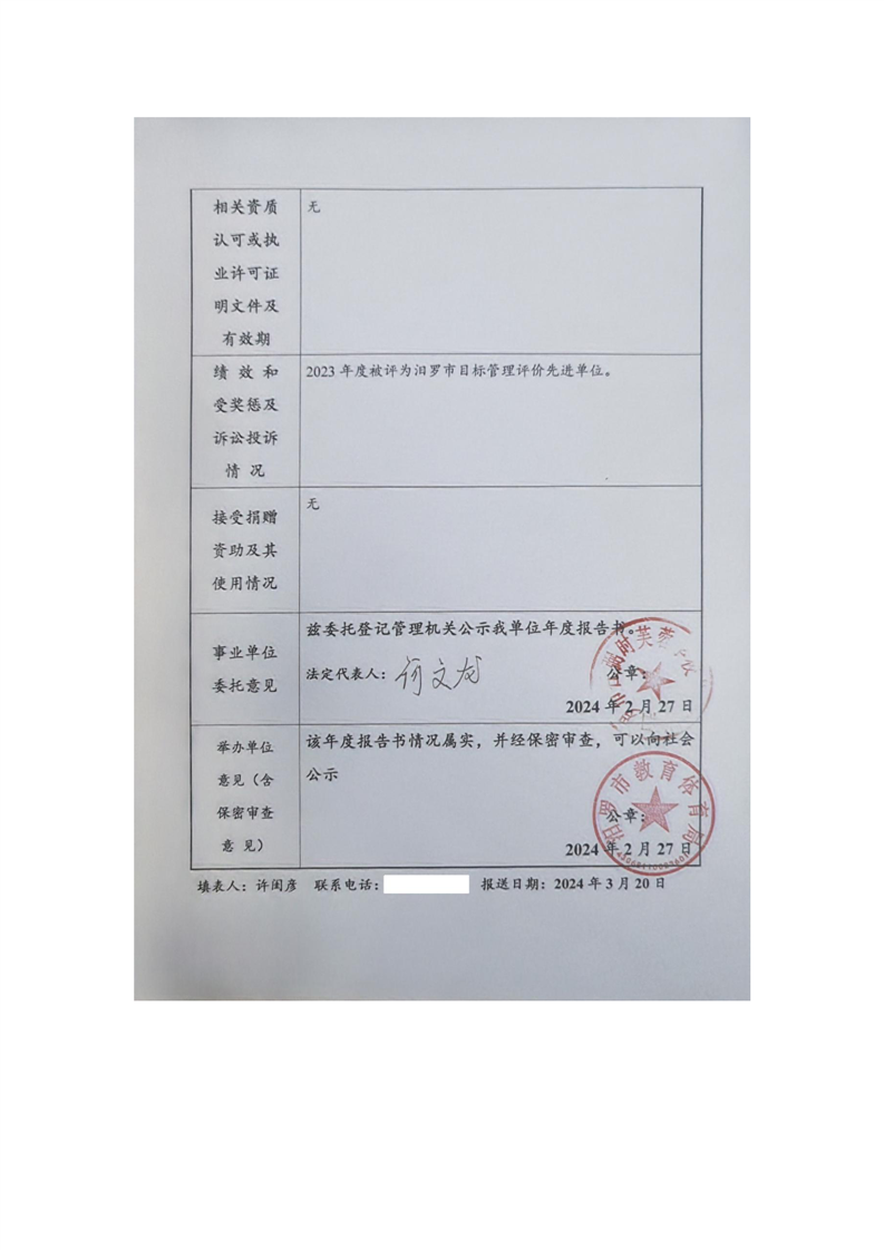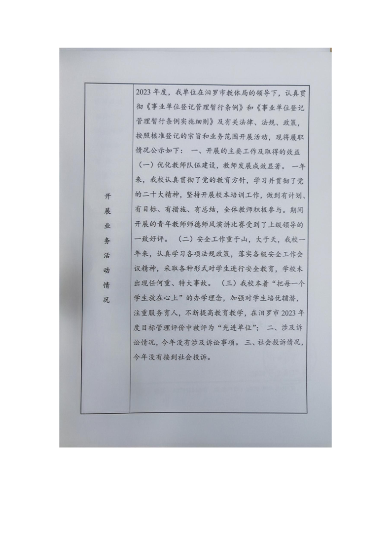 汨罗市任弼时芙蓉学校事业单位法人年度报告书