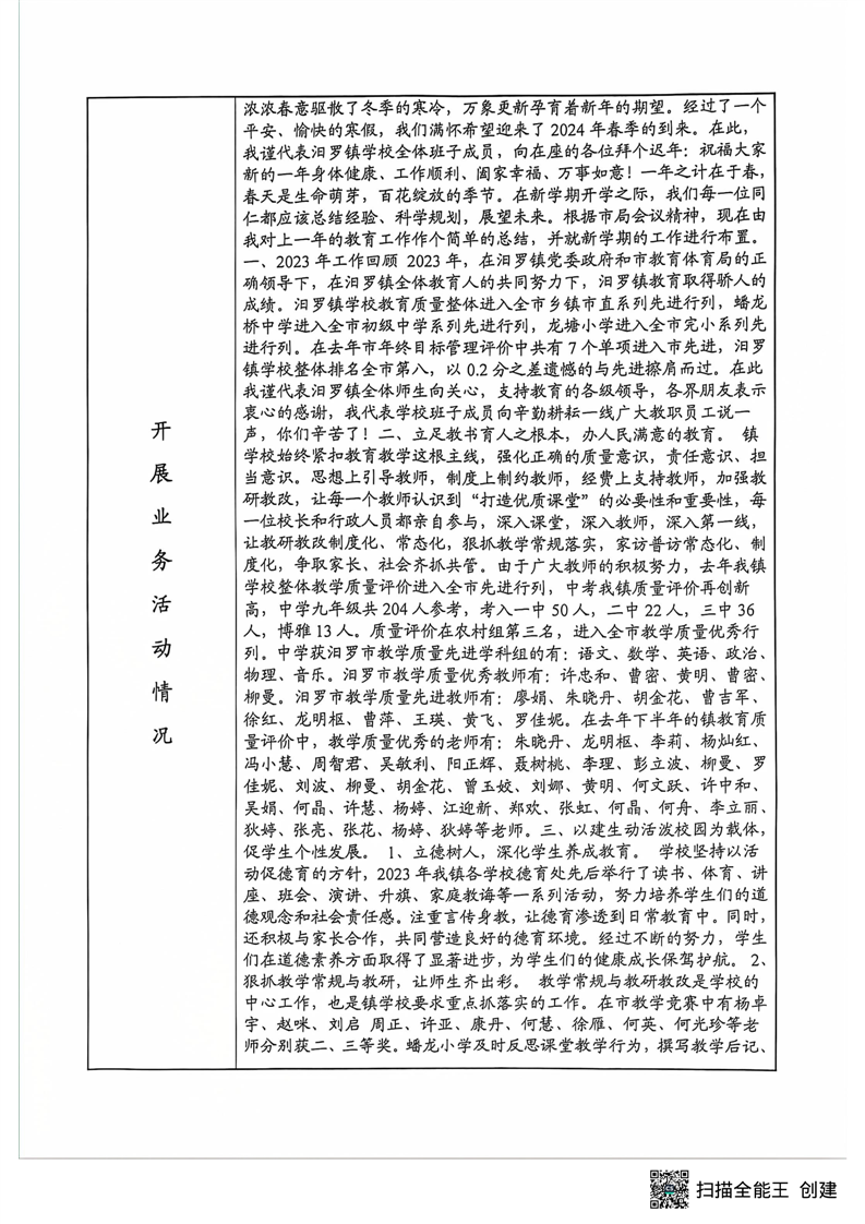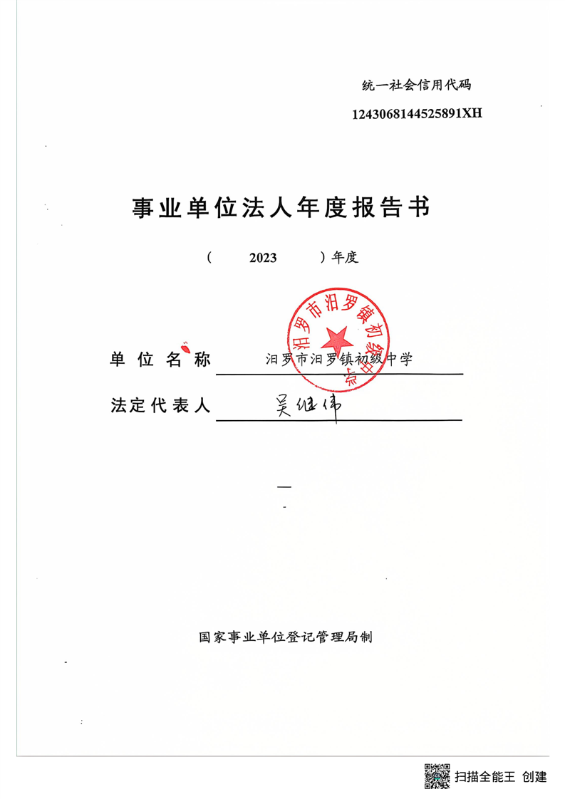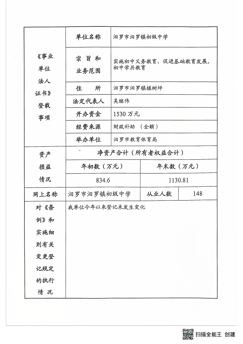 汨罗市汨罗镇初级中学事业单位法人年度报告书