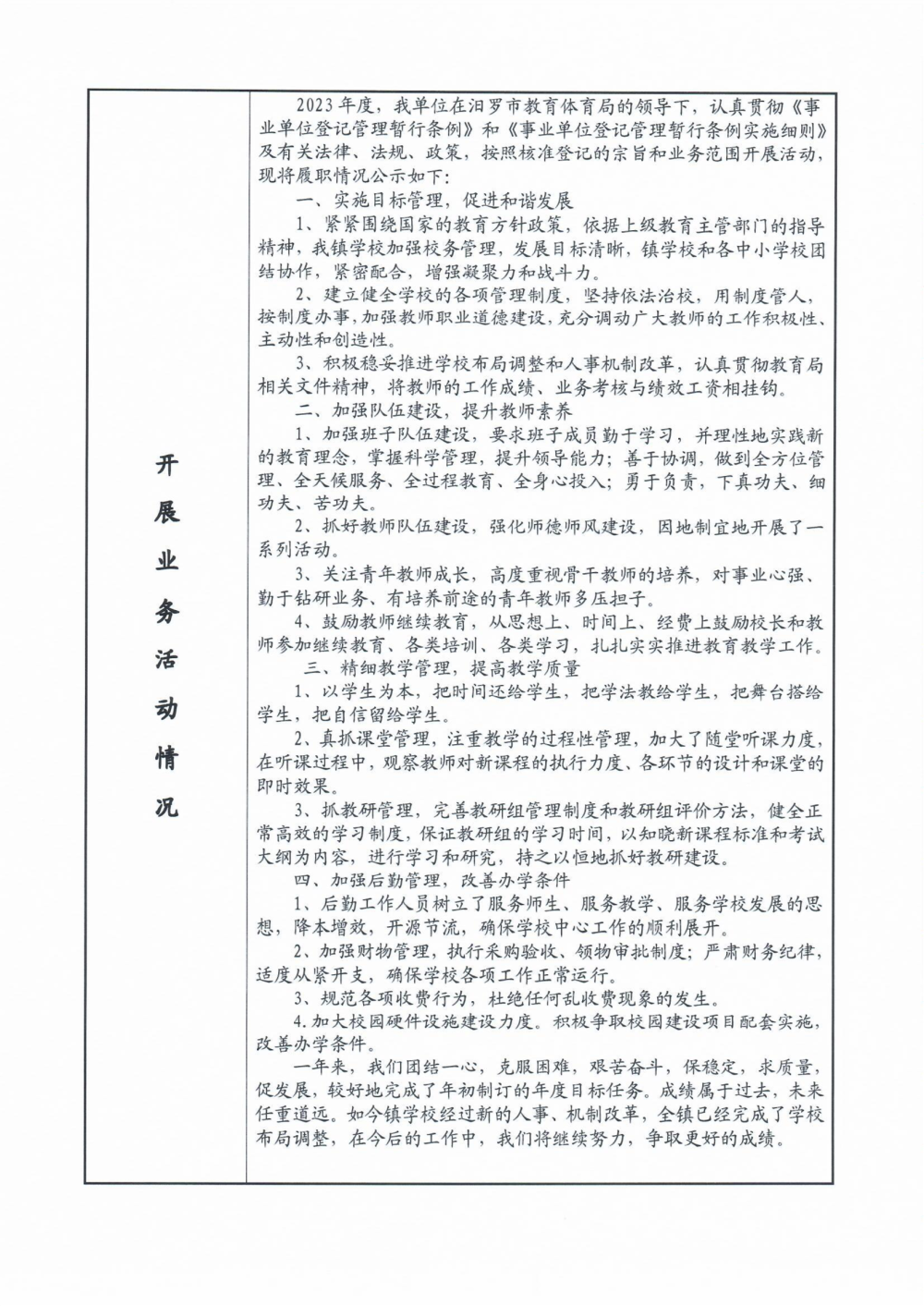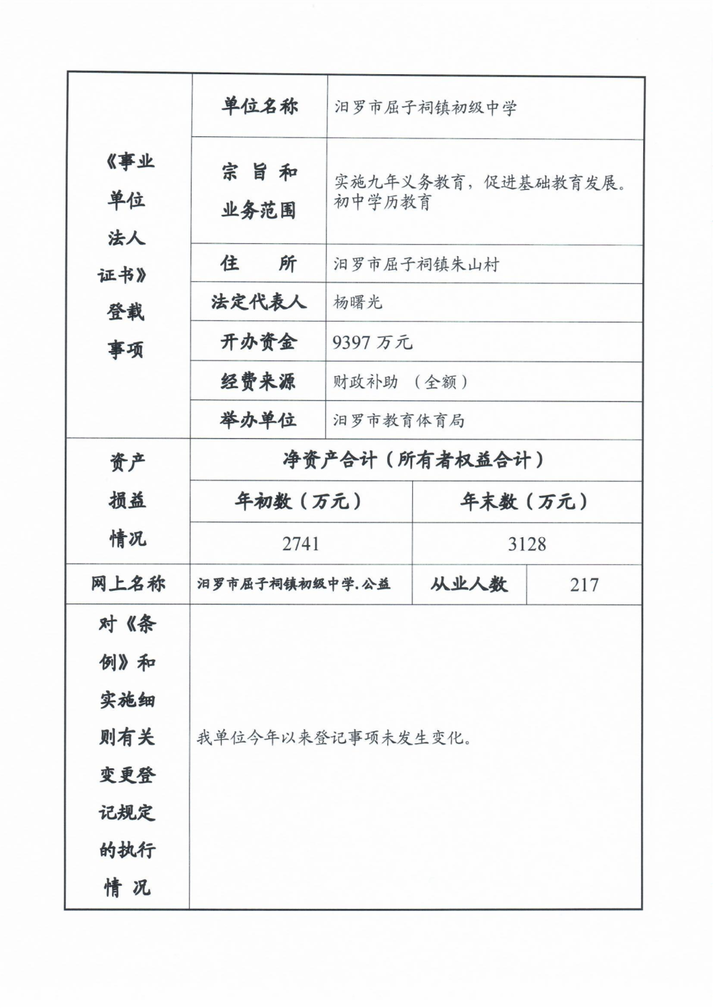 汨罗市屈子祠镇初级中学事业单位法人年度报告书
