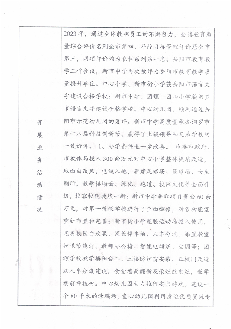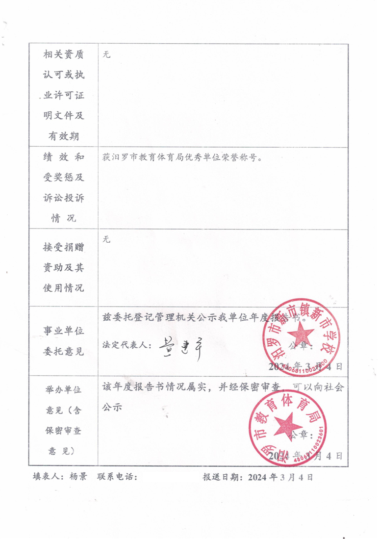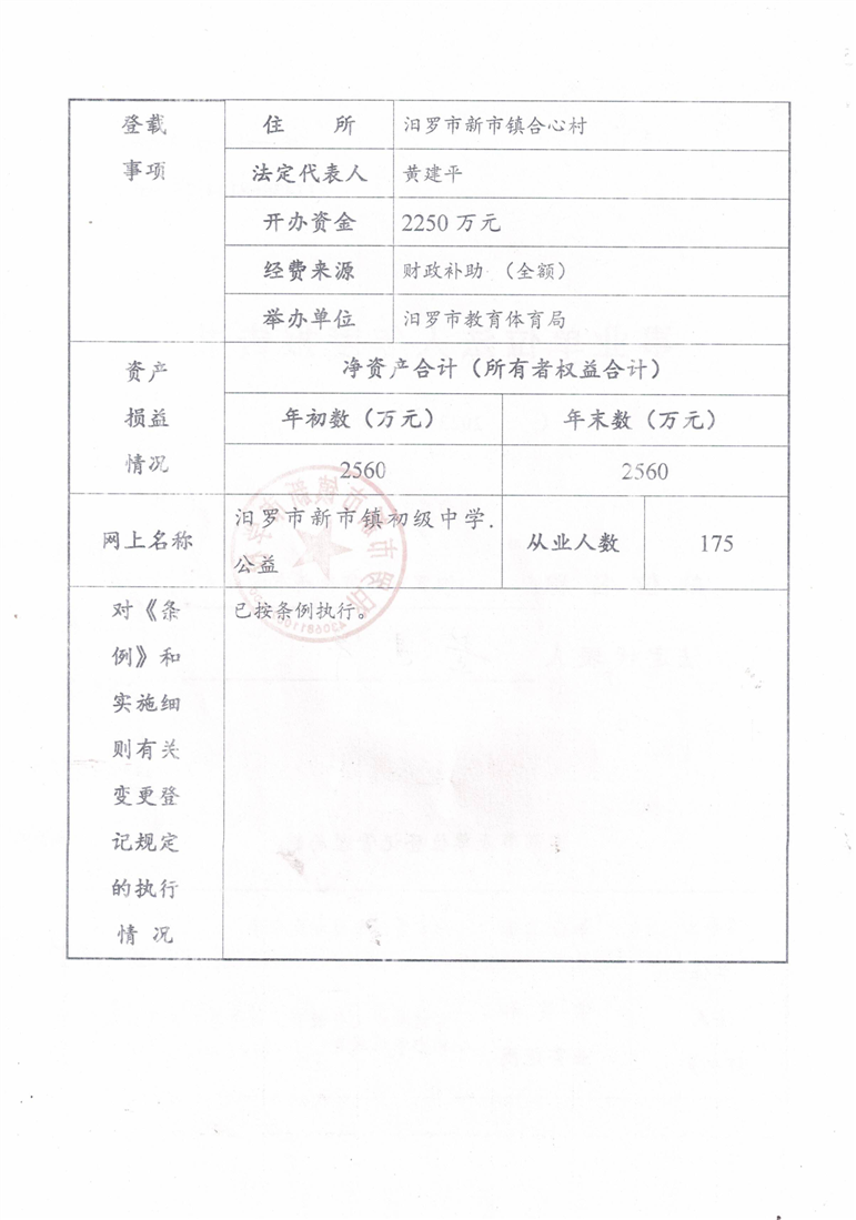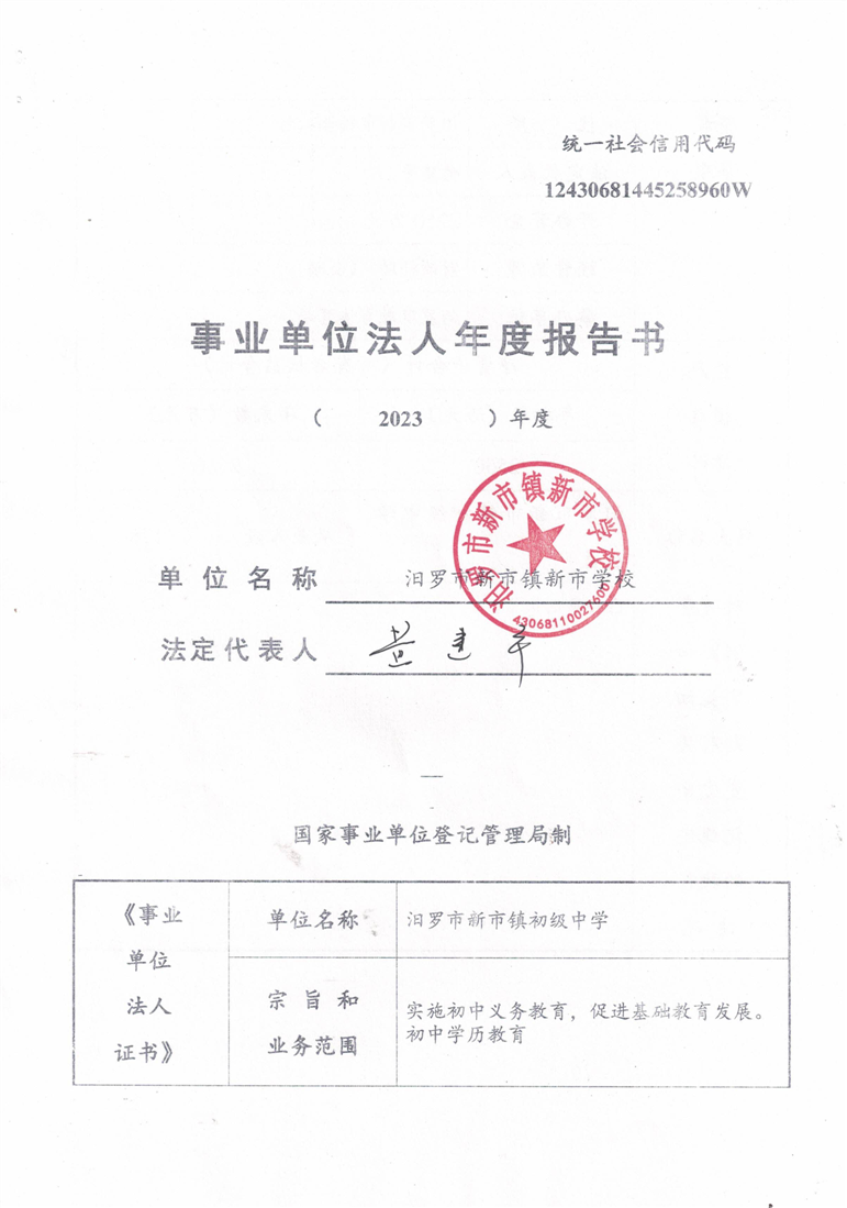 汨罗市新市镇新市学校事业单位法人年度报告书