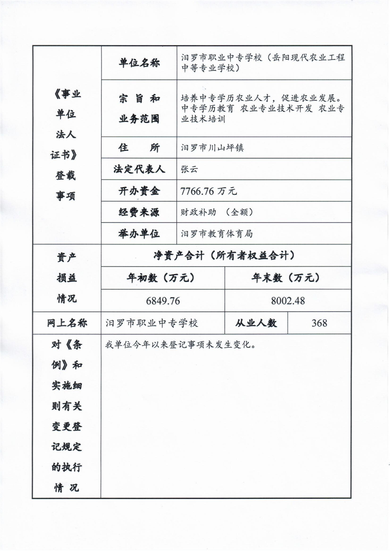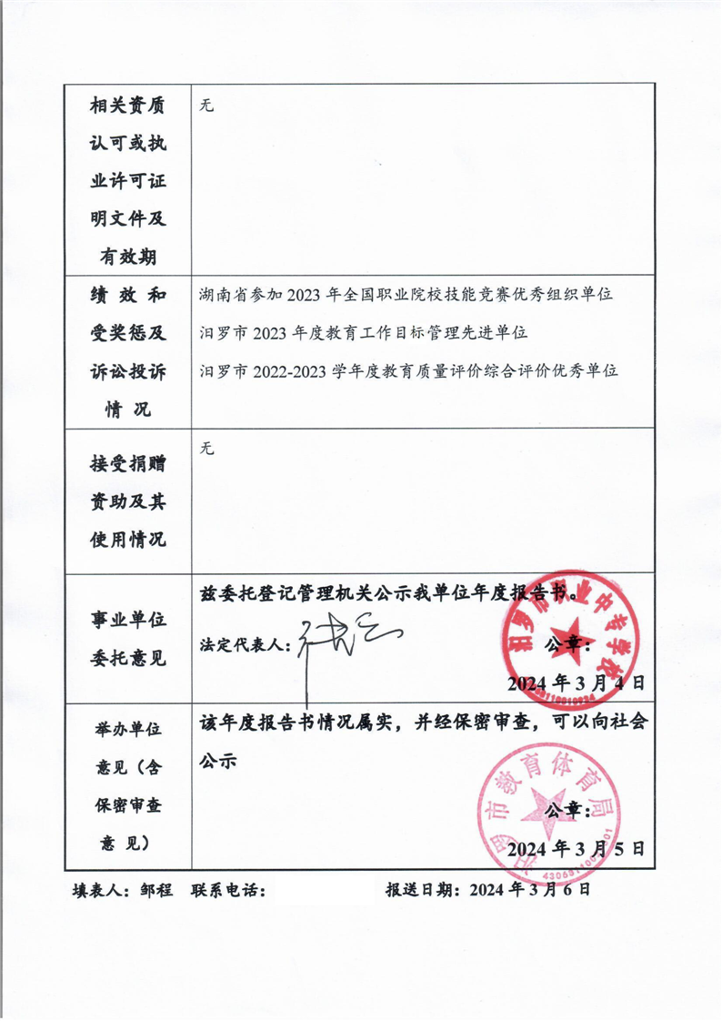 汨罗市职业中专2023年事业单位法人年度报告书