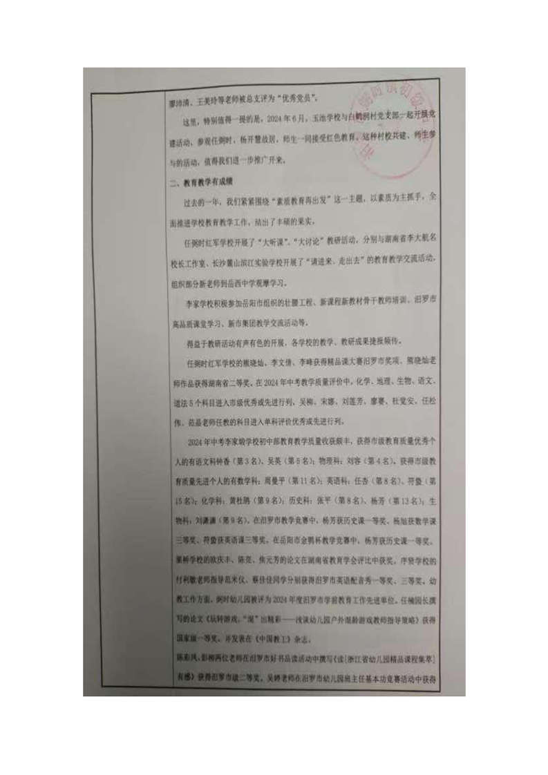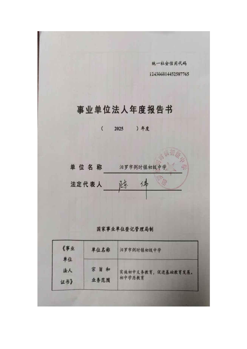 2024年汨罗市弼时镇初级中学法人年度报告书
