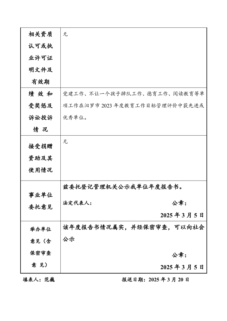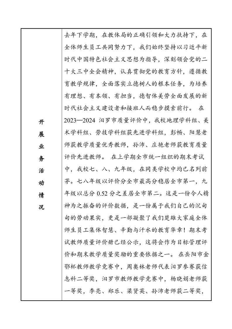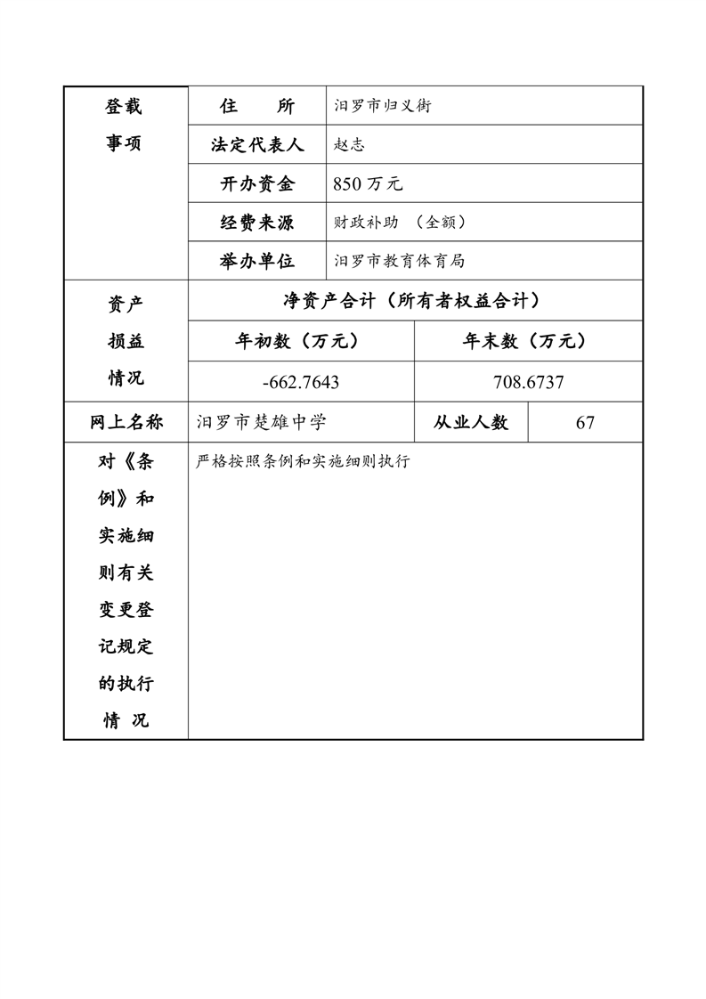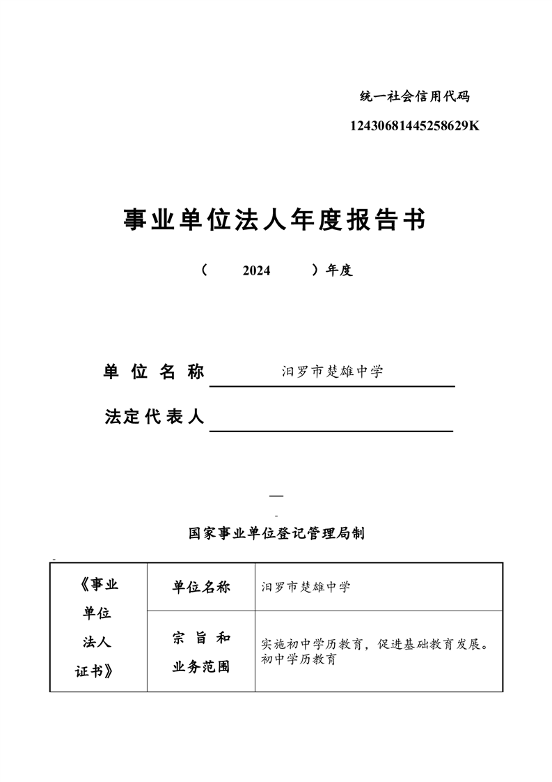 2024年汨罗市楚雄中学事业单位法人年度报告书