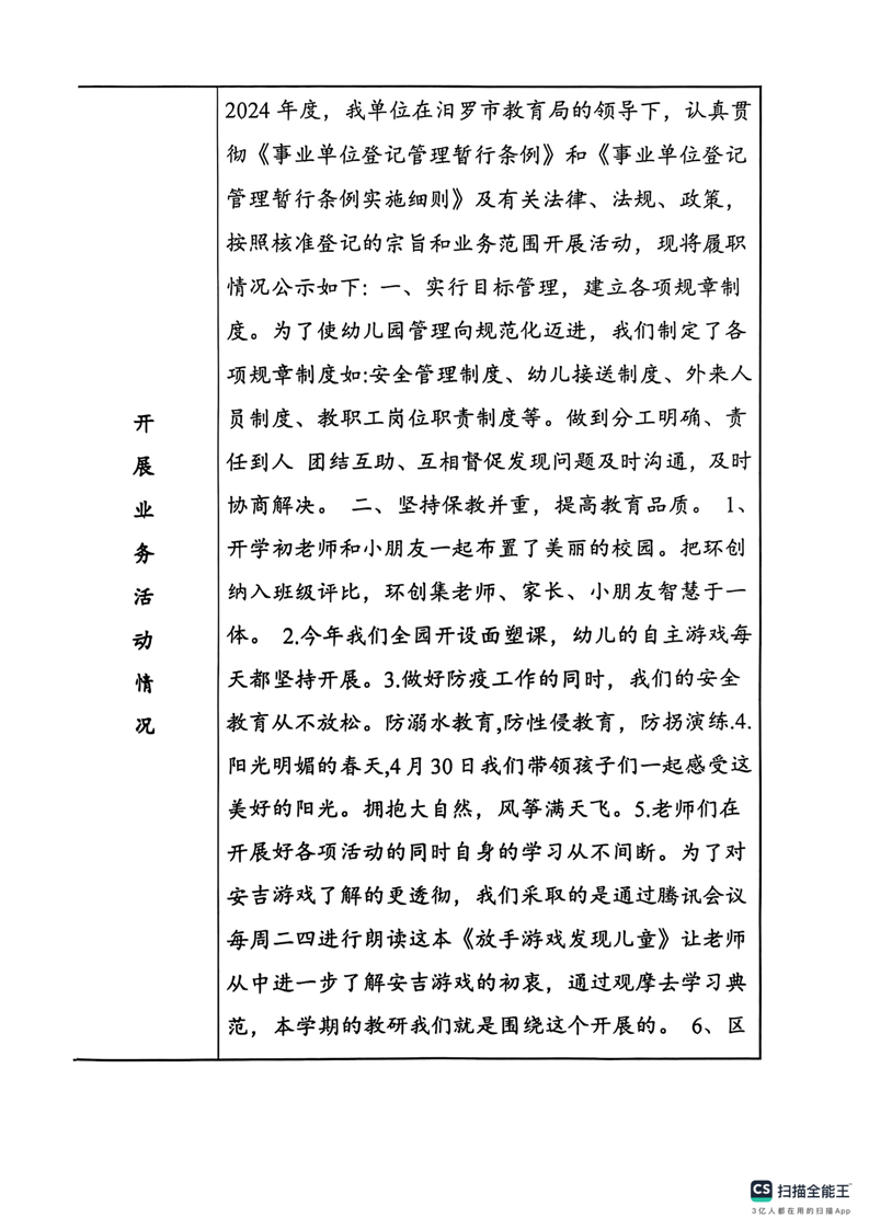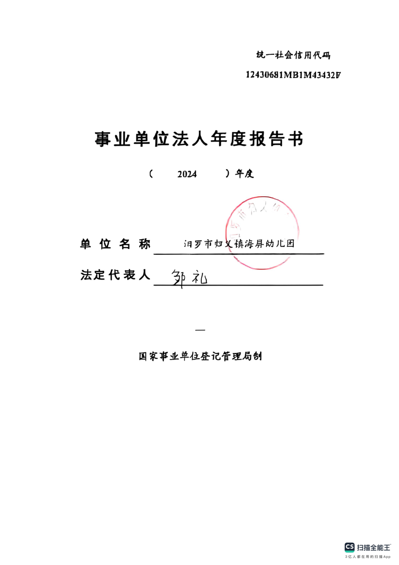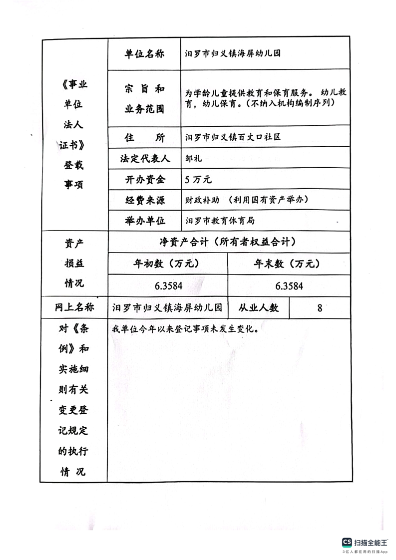 2024年汨罗市归义镇海屏幼儿园法人年度报告书
