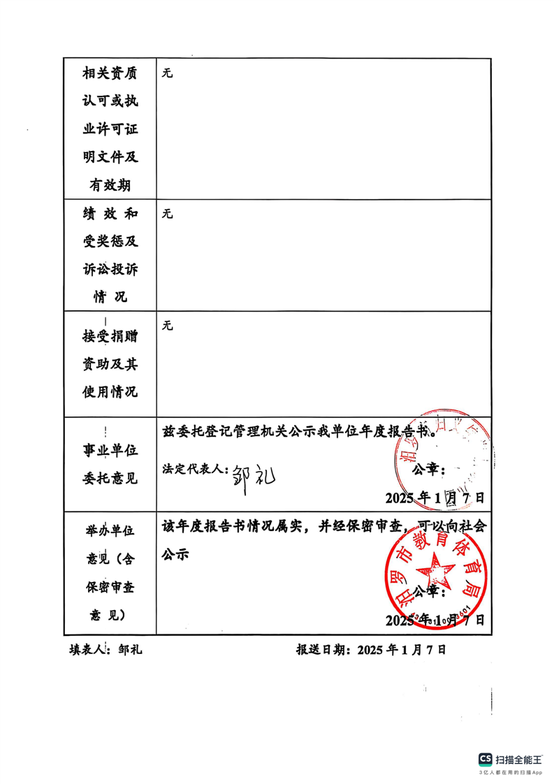 事业单位2024年度报告公示