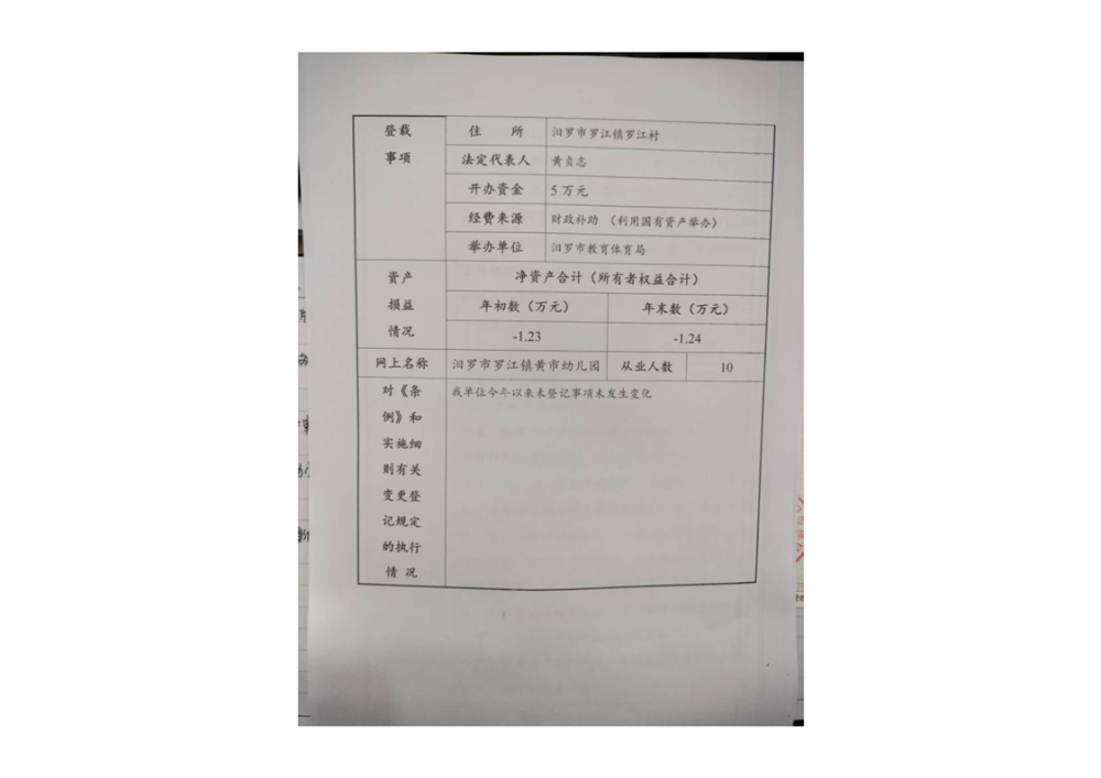 2024年汨罗市罗江镇黄市幼儿园事业单位年度报告书