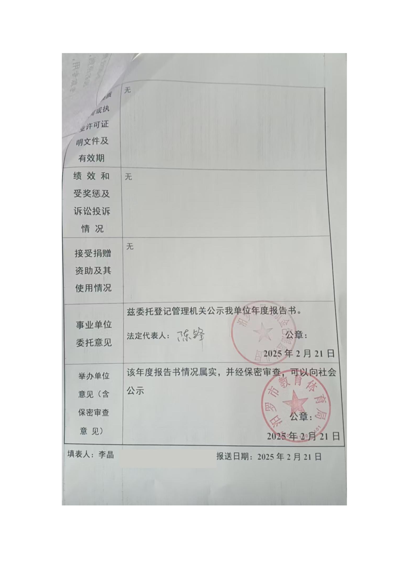 事业单位2024年度报告公示