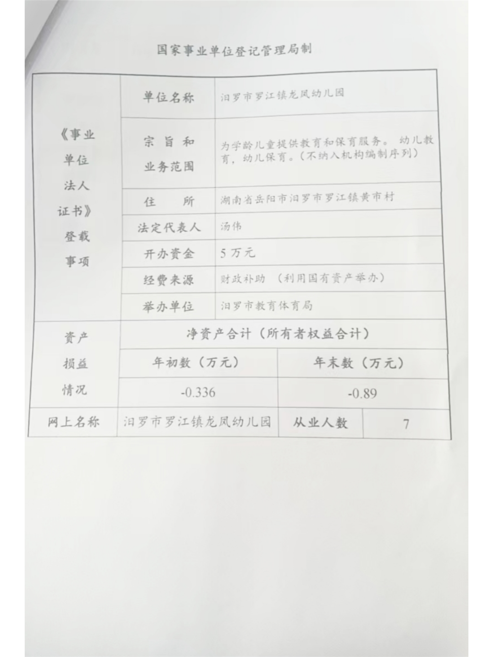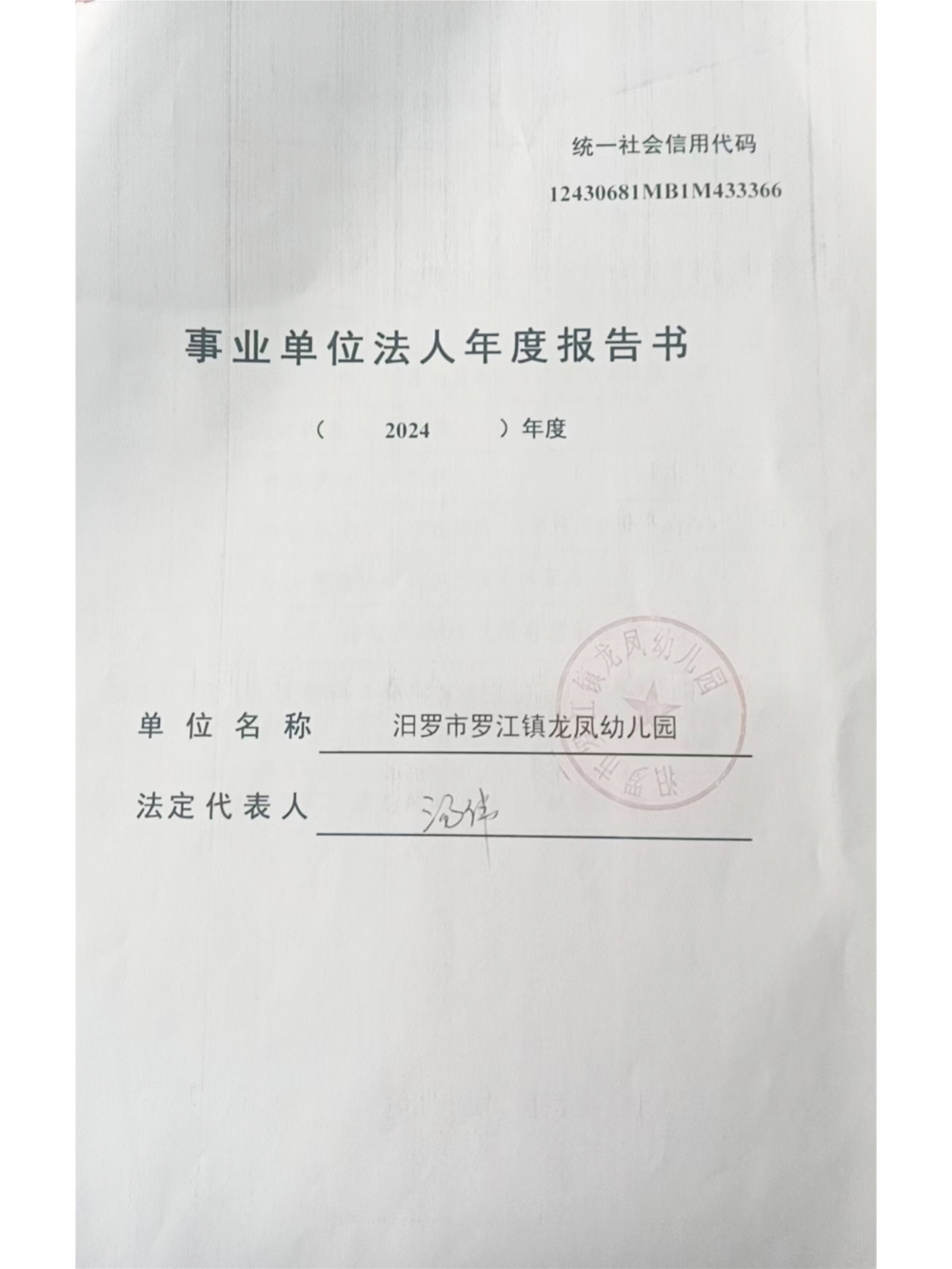 2024年汨罗市罗江镇龙凤幼儿园事业单位年度报告书
