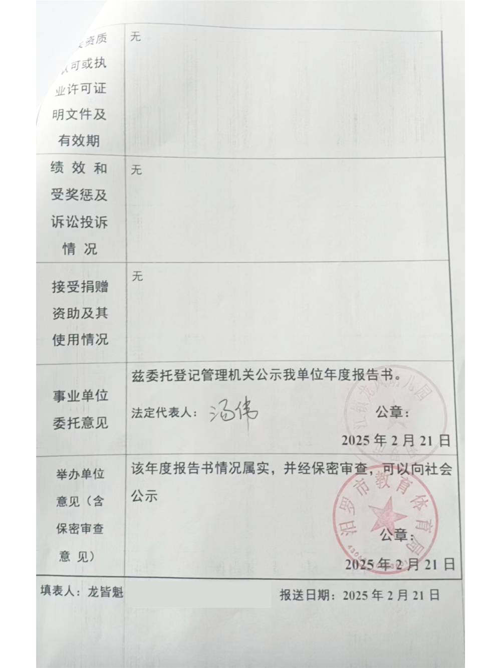 事业单位年度报告公示