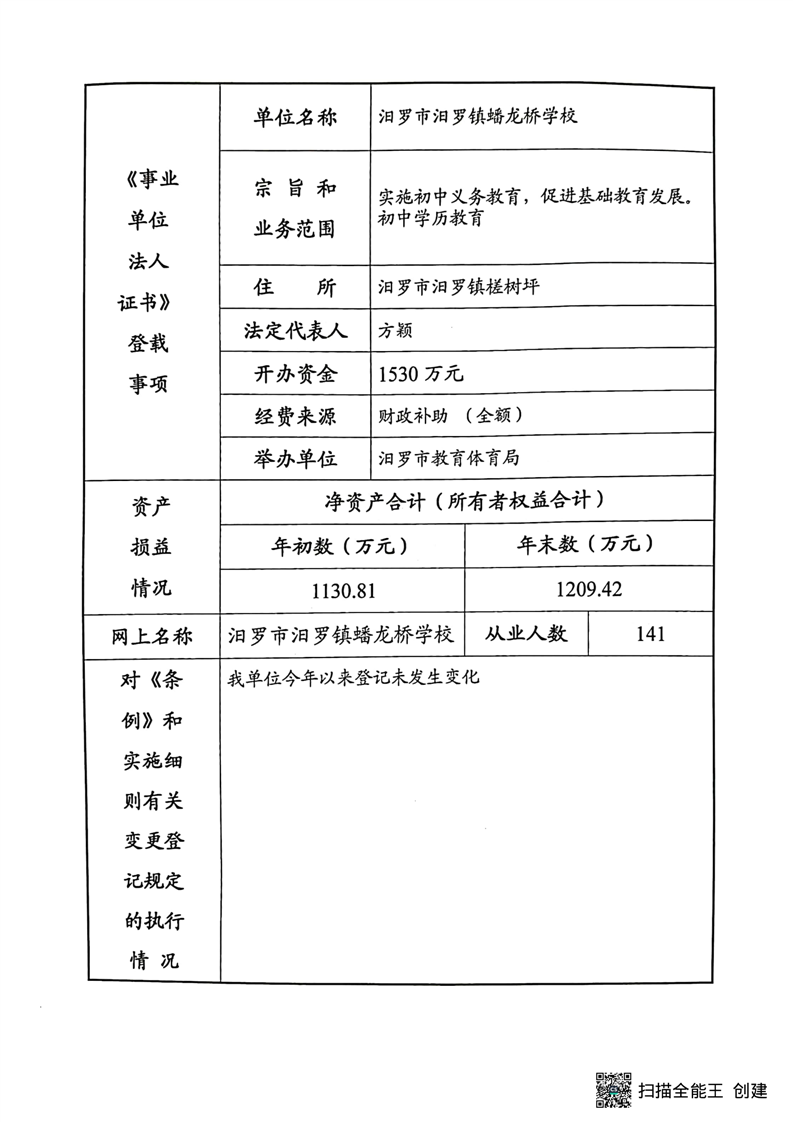 2024年汨罗市汨罗镇蟠龙桥学校年度报告书