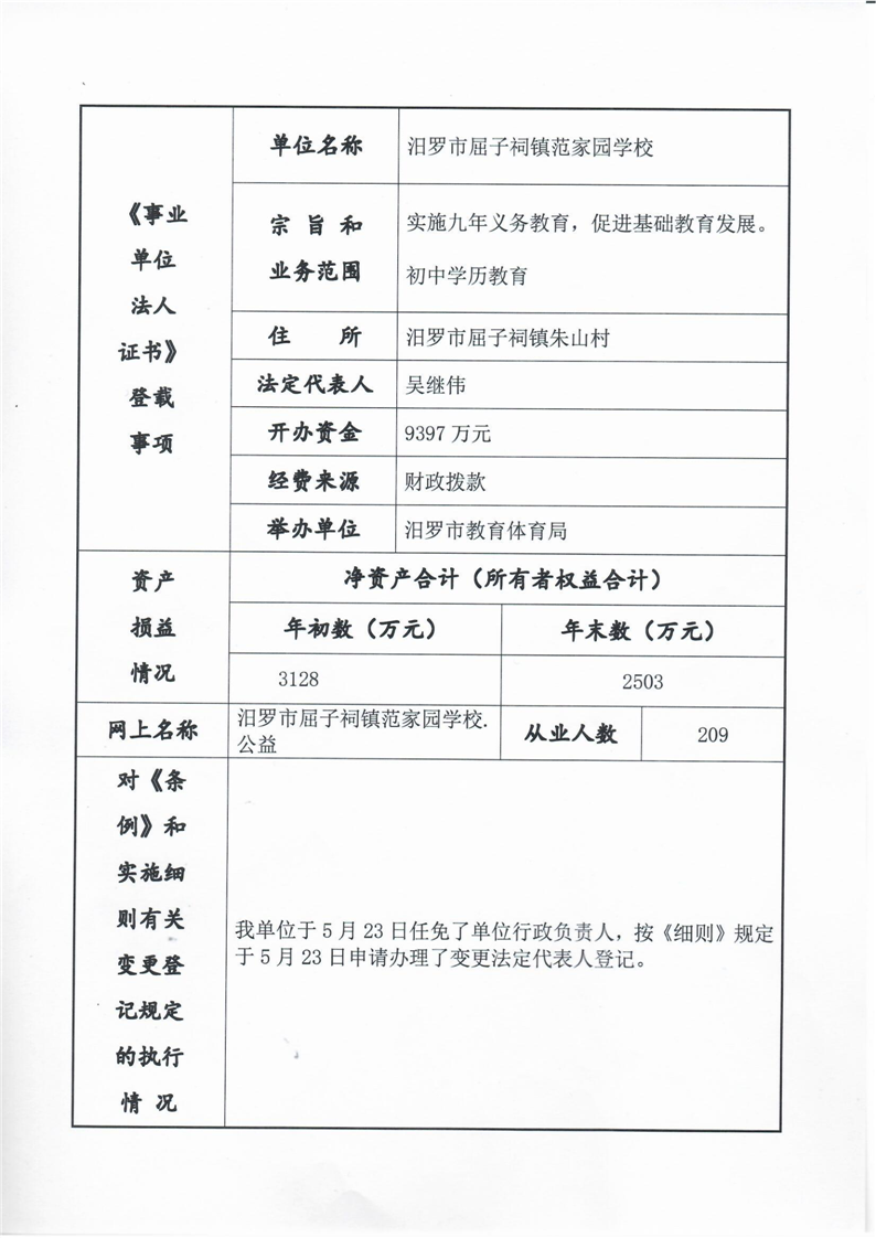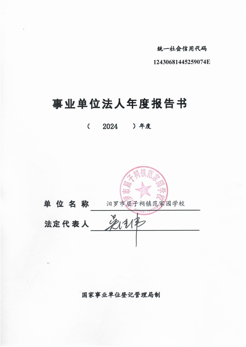 2024年汨罗市屈子祠镇范家园学校法人年度报告书