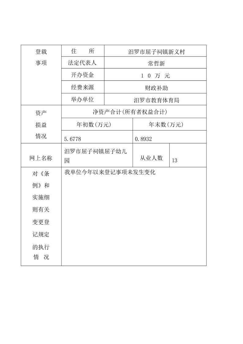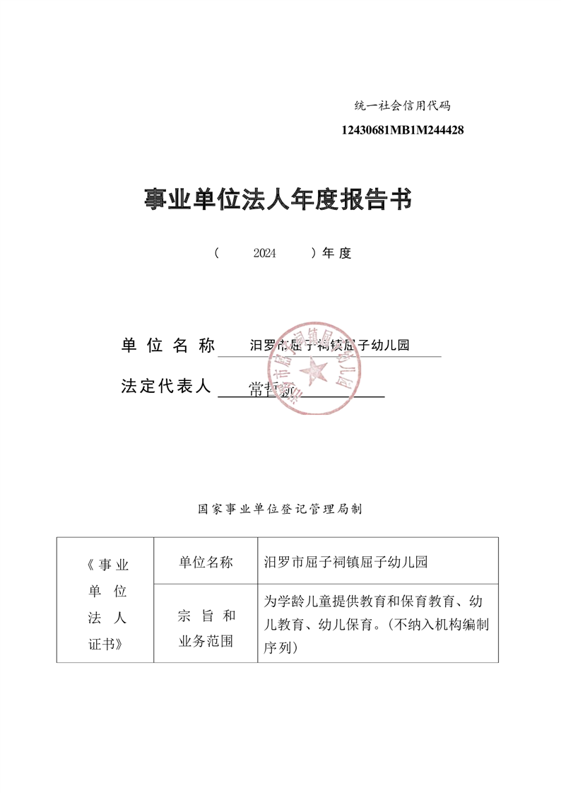 2024年汨罗市屈子幼儿园事业单位法人年度报告书