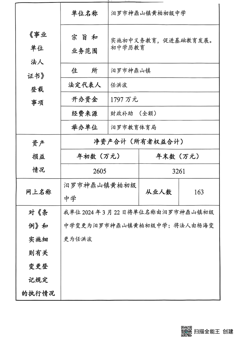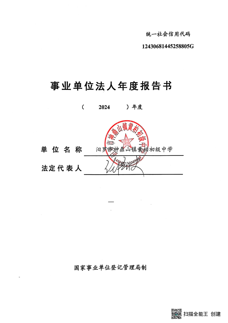 2024年汨罗市神鼎山镇黄柏初级中学