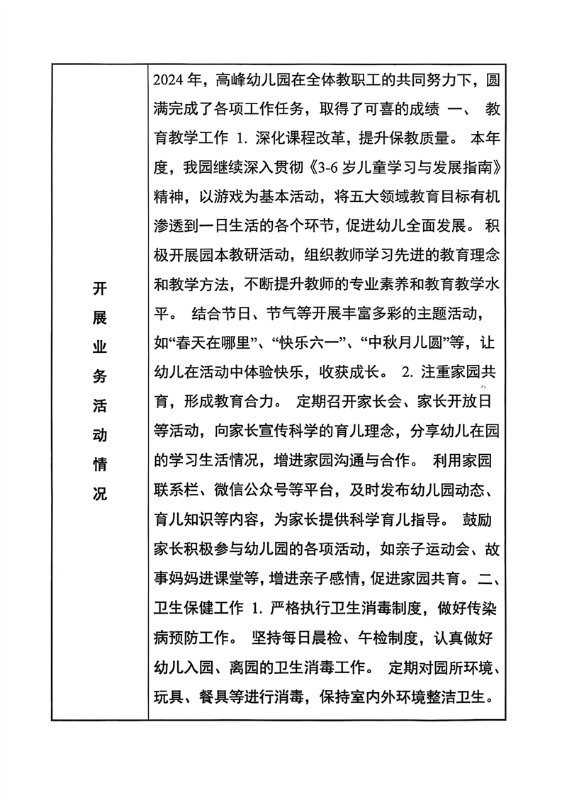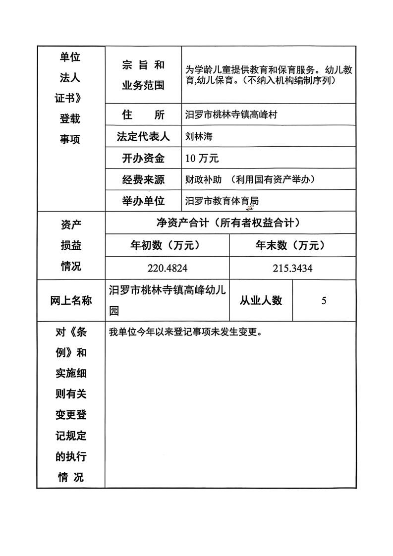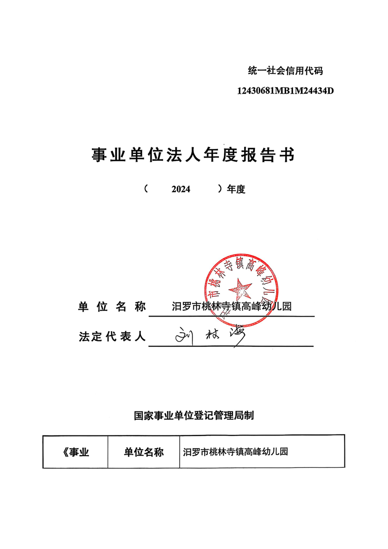 2024年汨罗市桃林寺镇高峰幼儿园年度报告书