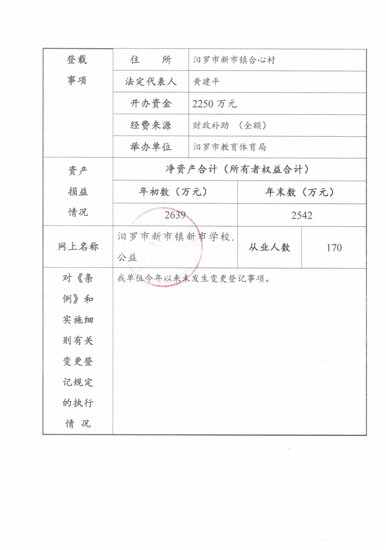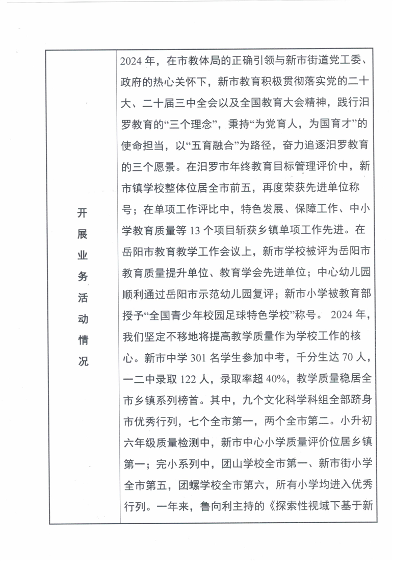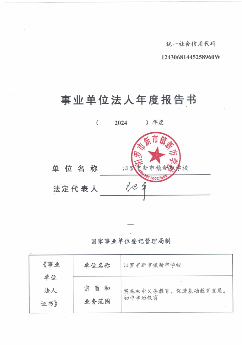 2024年汨罗市新市镇新市学校事业单位法人年度报告书