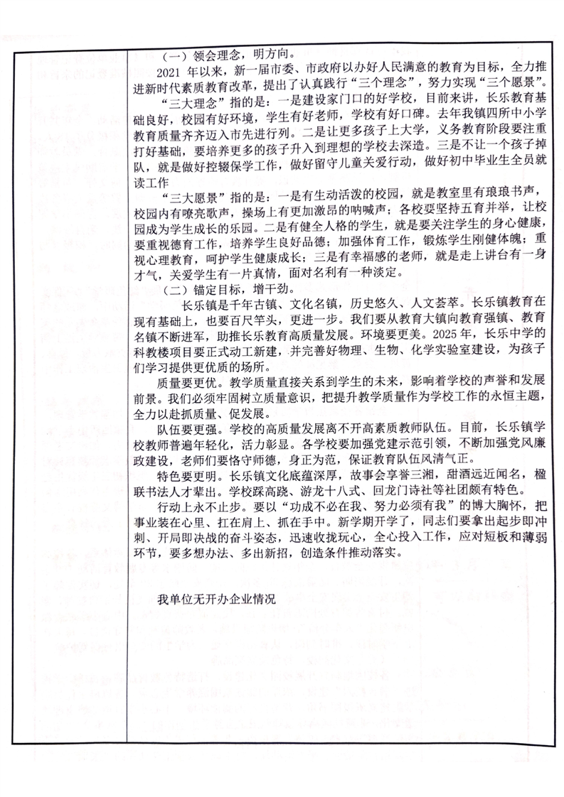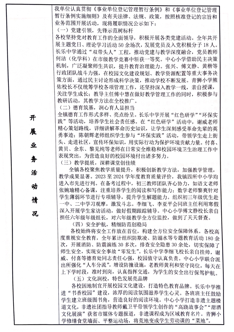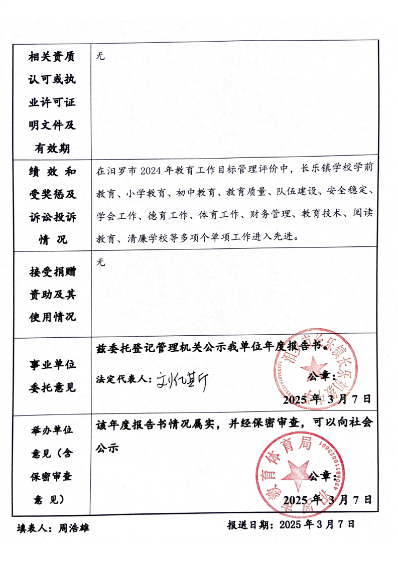 2024年汨罗市长乐镇长乐初级中学法人年度报告书