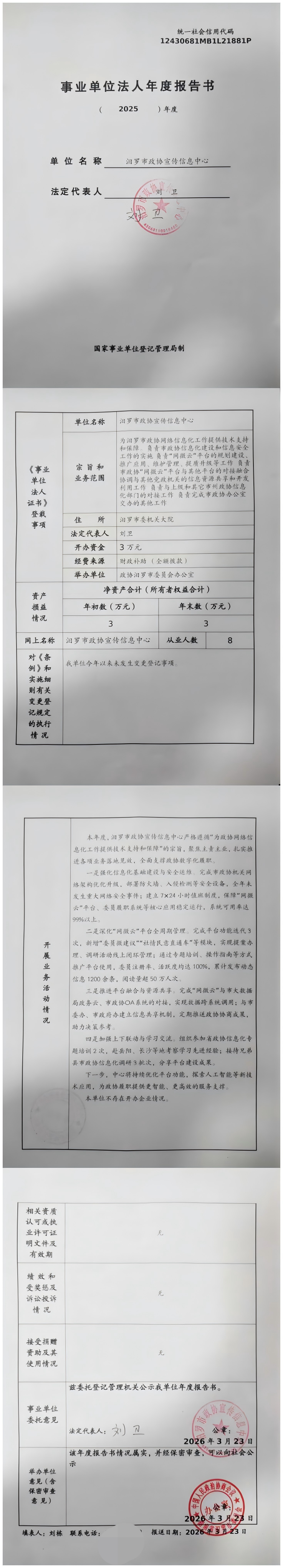 2025年度事业单位法人年度报告书-汨罗市政协宣传信息中心