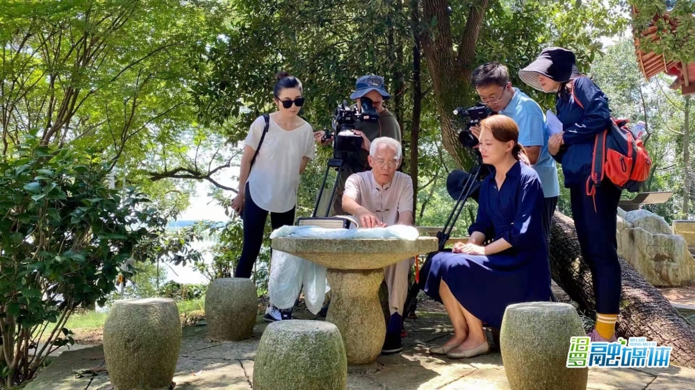 刘石林在屈子祠前接受CCTV-4中文国际频道采访