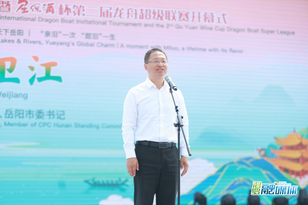 蒋涤非说,湖南山水如画、风物如诗、人文荟萃,自古便是“挥毫当得江山助”的锦绣之地。岳阳是湖湘文化的重要发源地,汨罗是承载着湘楚文化、端午文化、龙舟文化的热土,龙舟赛已成为弘扬中华优秀传统文化、促进文体旅融合发展、推动国际人文交流合作的闪亮名片。欢迎大家共同感受龙舟文化的浪漫和激情,领略“三湘四水” 的独特魅力,共同谱写文明交流互鉴的时代华章。