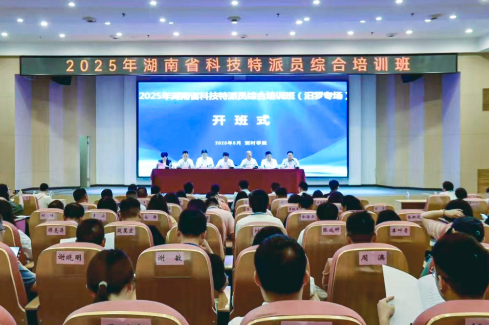 为深入落实科技特派员制度,进一步增强广大科技特派员扎根基层、服务乡村振兴的能力本领,5月15日,2025年湖南省科技特派员综合培训班(汨罗专场)在汨罗市开班,来自全省各市州的120余名科技特派员代表和有关工作负责同志参加培训。省科技厅二级巡视员胡章谋,湖南农业大学党委委员、副校长杨国顺,省委组织部、岳阳市科技局和汨罗市政府相关负责同志出席开班仪式。