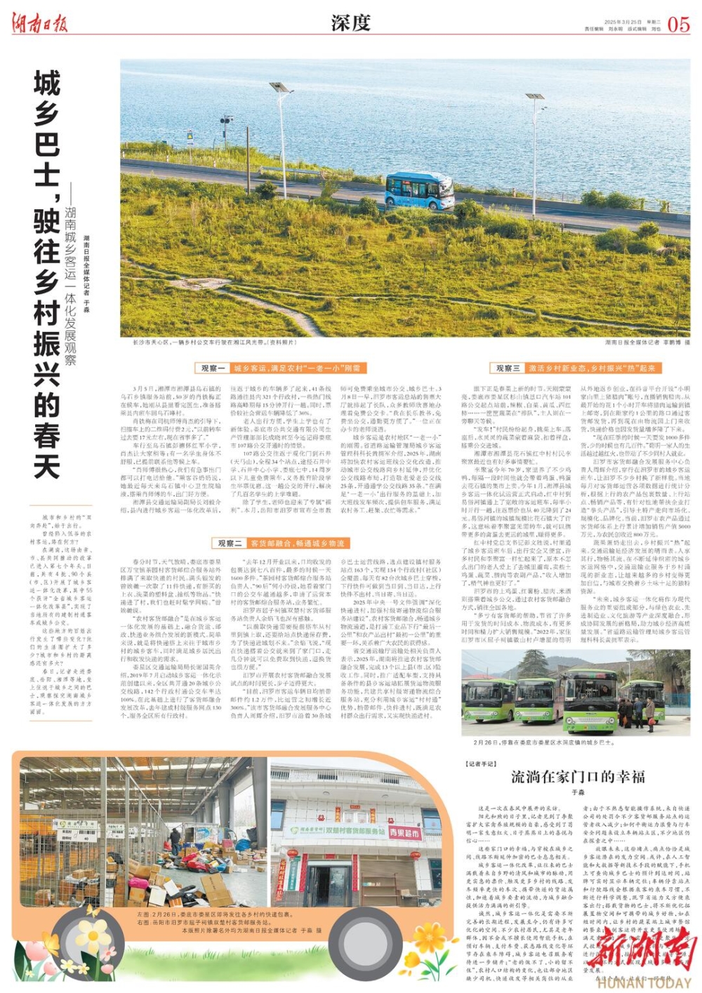 春日,记者走进娄底、岳阳、湘潭等地,坐上往返于城乡之间的巴士,观察探究湖南城乡客运一体化发展的方方面面。