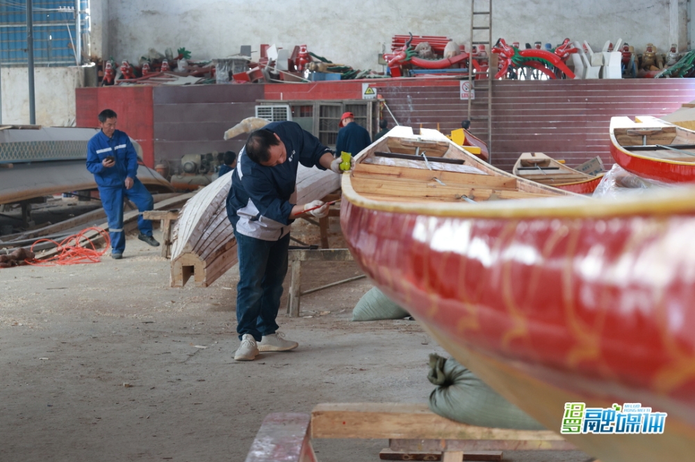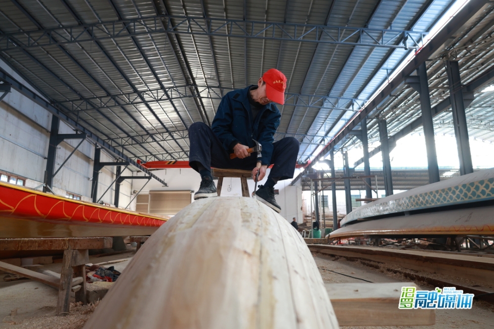 近日,汨罗市屈子祠镇屈原村,九子龙屈原龙舟有限公司厂房内机械轰鸣、工人协作,一派忙碌景象。