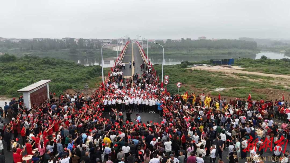 湖南日报·新湖南客户端9月28日讯(记者 周磊 通讯员 周小珺)一桥连两岸,天堑变通途。9月28日,连接汨罗市长乐镇与平江县伍市镇的长乐大桥正式通车,数百名长乐镇民众身着传统彩衣,抬着独具特色的“故事会”巡游过桥,以最热烈的方式庆祝这一历史性时刻。这座仅用1年时间便从灾后蓝图化为现实的新桥,彻底终结了两岸10余万群众的绕行之苦,成为紧密连接汨罗与平江的“连心桥”。