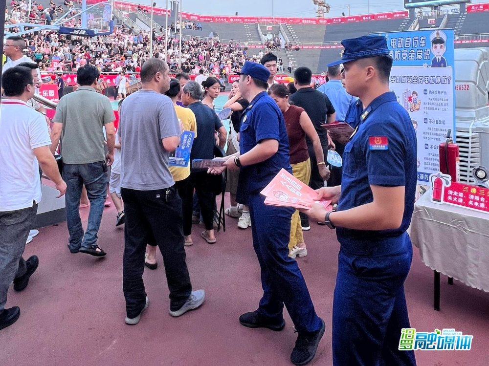 活动中,消防救援人员积极与现场啦啦队及观众互动,向大家发放消防宣传单页达4000余份。宣传单页上清晰罗列了家庭防火注意事项、电动自行车消防安全、火场逃生自救常识等内容,便于群众快速掌握关键知识。