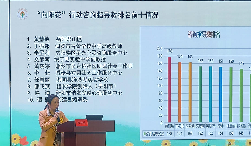 近年来,汨罗市青少年心灵驿站受市妇联委托,开展“向阳花”行动,在2024年共完成164例家庭教育咨询指导个案,名列全省第二,受到了省妇联等相关部门的表彰。