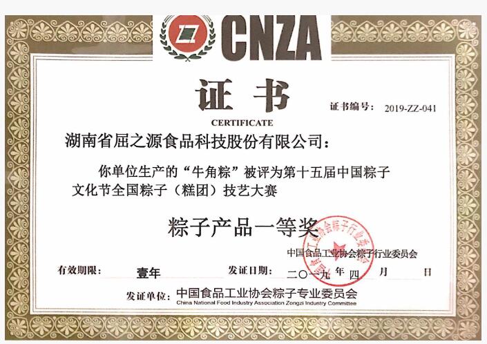 丰县举行的第十五届中国粽子文化节全国粽子(糕团)技艺大赛上,湖南屈之源食品科技有限公司生产的“牛角粽”在全国数十家知名粽子代表企业中脱颖而出,荣获全国粽子产品一等奖。据悉,这也是汨罗企业首次站上全国粽子(糕团)比赛的最高领奖台。
