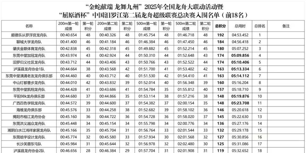巅峰对决!汨罗江龙舟超级联赛首日战况激烈,18支队伍晋级决赛