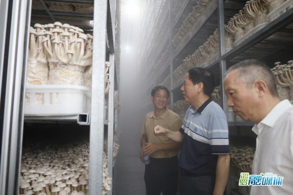 在桃林寺镇合力村,调研组实地考察了特色红薯良种繁育基地、红薯产品加工卷叠式钢架厂房及红薯种植基地。基地负责人徐卫平向调研组介绍了“西瓜红”“榴莲蜜薯” “人参薯”等优质示范品种,并汇报了科技兴农的具体举措与成效。随后,调研组前往湖南国耳生物科技有限公司,考察由高级农艺师王安华指导的食用菌培育基地,参观了智能出菇房,详细了解企业在种植、精准化生产、加工与销售等环节的运行情况。