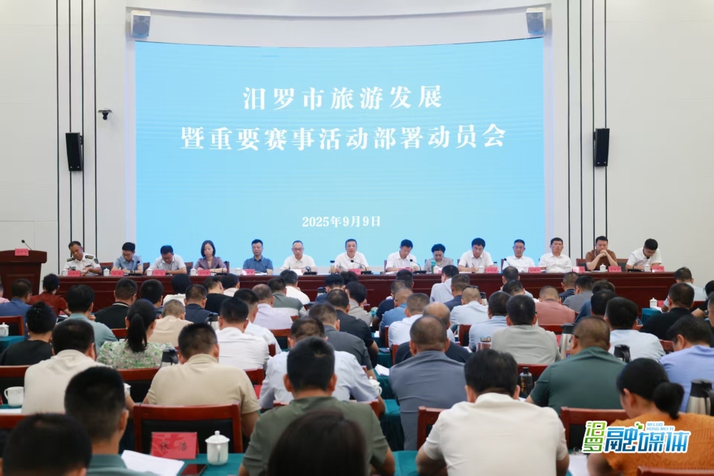汨罗融媒体讯(记者 夏凡)9月9日下午,汨罗市召开旅游发展暨重要赛事活动部署动员会,总结“十四五”文旅发展成绩,谋划“十五五”文旅融合高质量发展蓝图,部署第13届中国大学生龙舟锦标赛、2025中国山马—湖南汨罗站、省龙舟超级联赛总决赛三项重要赛事。市委书记朱平波讲话,市委副书记、市长林恒求主持。