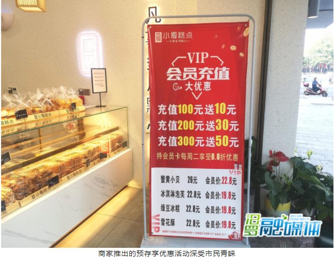 "听说充100元可以送两个蛋糕,我也预存了。结果不到两个月,卡里还有一半钱,老板就把店给转让了,自己消失了。"另一位市民何女士表示。