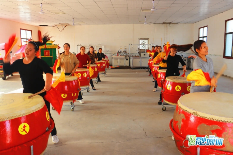 双楚村威风锣鼓队正在排练