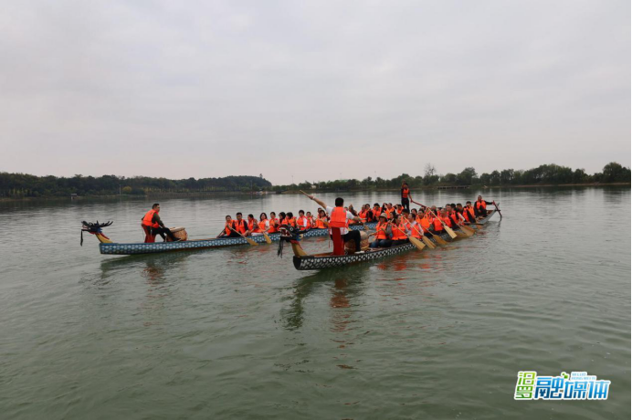 随后,活动迎来高潮环节——龙舟体验竞赛。在风景如画的香草湖上,第一支部与第五支部先后展开龙舟拔河与龙舟竞速体验赛。湖面鼓声震天,队员们奋楫挥桨、齐心向前;岸边加油声、呐喊声此起彼伏,气氛热烈。这场兼具趣味与竞技的龙舟活动,将“奋斗笃行、团结协作”的龙舟精神从口号转化为真切体验,有效激发了团队的荣誉感与内在活力。