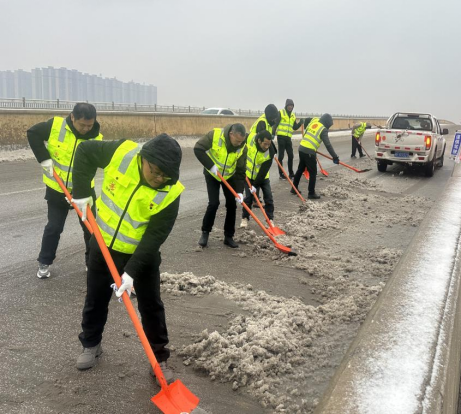 织密网络,重点巡查。中心加密巡查频次,顶风冒雪排查隐患,实时监测路况,形成“发现-上报-处置-反馈”闭环。针对桥梁易结冰特性,实行24小时专人值守,每小时测温巡查,达到临界值即启动融雪除冰,严防安全事故。
