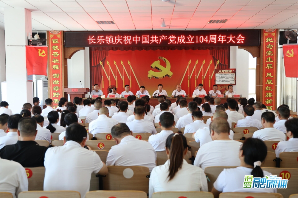 7月1日上午,长乐镇召开庆祝中国共产党成立104周年大会。全体党政负责干部、机关全体干部职工、村(社区)“两委”成员、今年转正的预备党员和新发展党员参会。