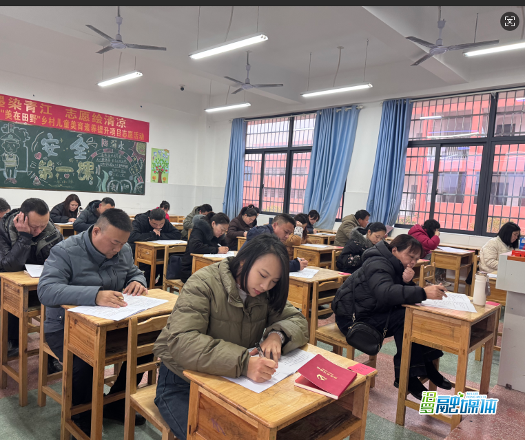 培训会以理论测试拉开帷幕,村干部们在青江学校完成集中测试后,统一前往镇政府五楼会议室参加培训。本次课程内容紧贴基层工作实际,涵盖党风廉政、村级财务、党建与意识形态、农业生产、人居环境治理、安全生产、综治维稳等关键领域,由经验丰富的“实战干部”担任主讲人,通过具体案例和接地气的讲解,将政策法规转化为易懂、实用的“操作指南”。学员们认真听讲、积极交流,现场学习氛围浓厚。
