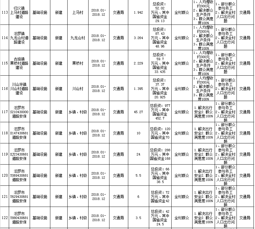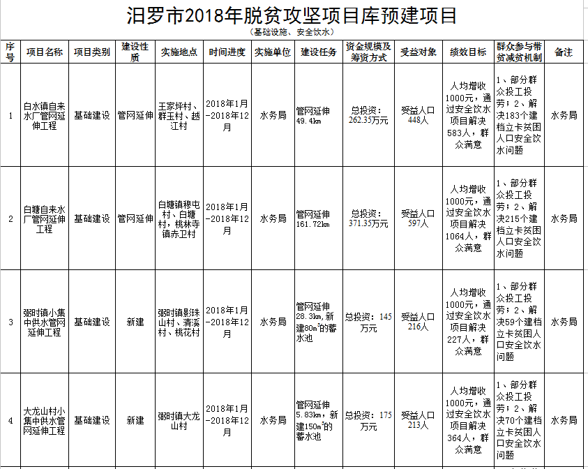 汨罗市2018年脱贫攻坚项目库预建项目公示(基础设施建设)
