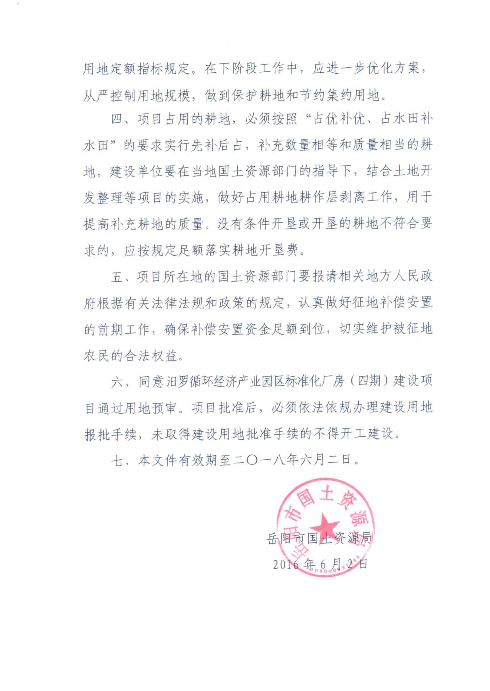 汨罗循环经济产业园区标准化厂房(四期)用地预审意见