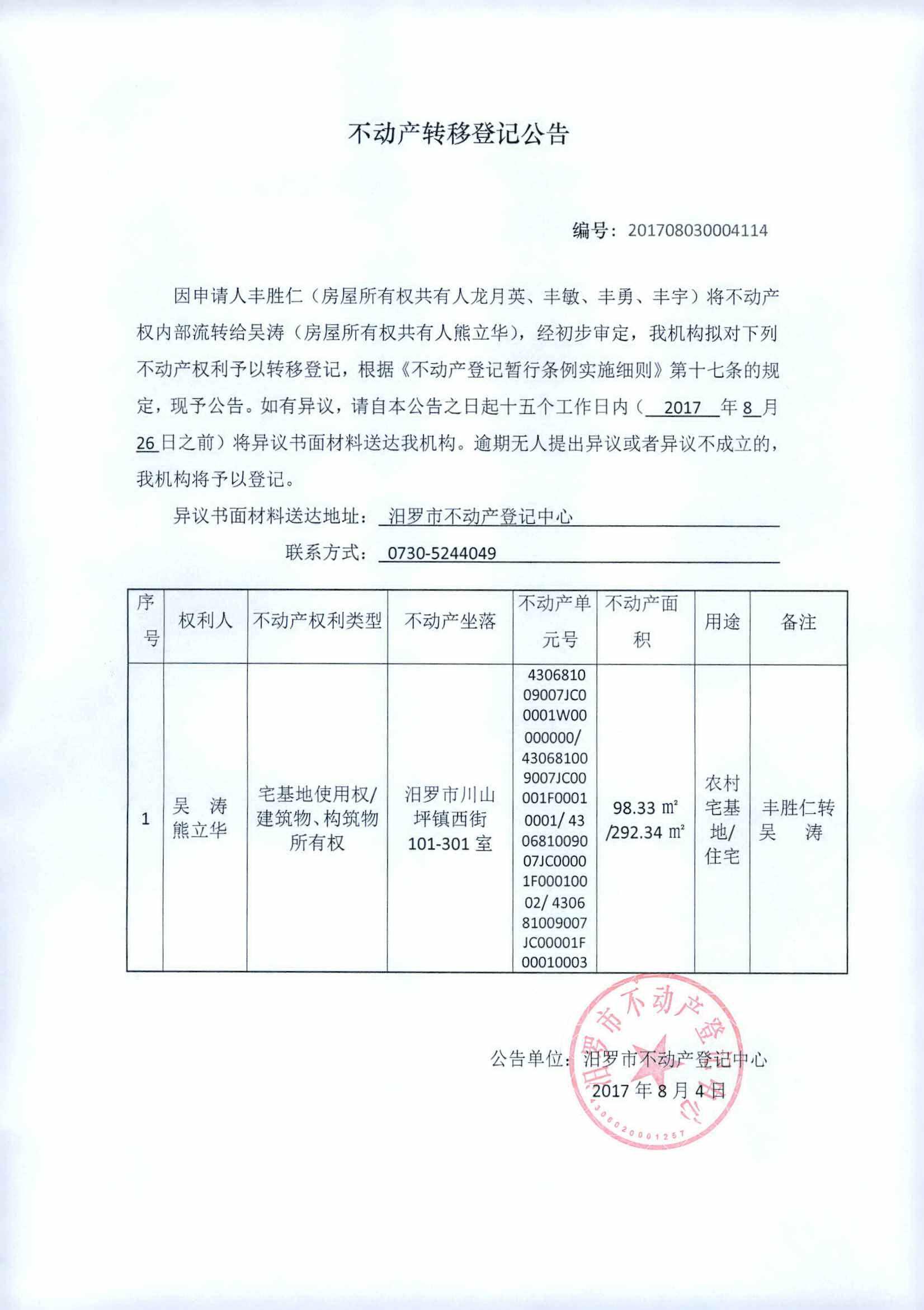 作者:汨罗市不动产登记中心 来源:汨罗市不动产登记中心 更新时间:2017-08-04