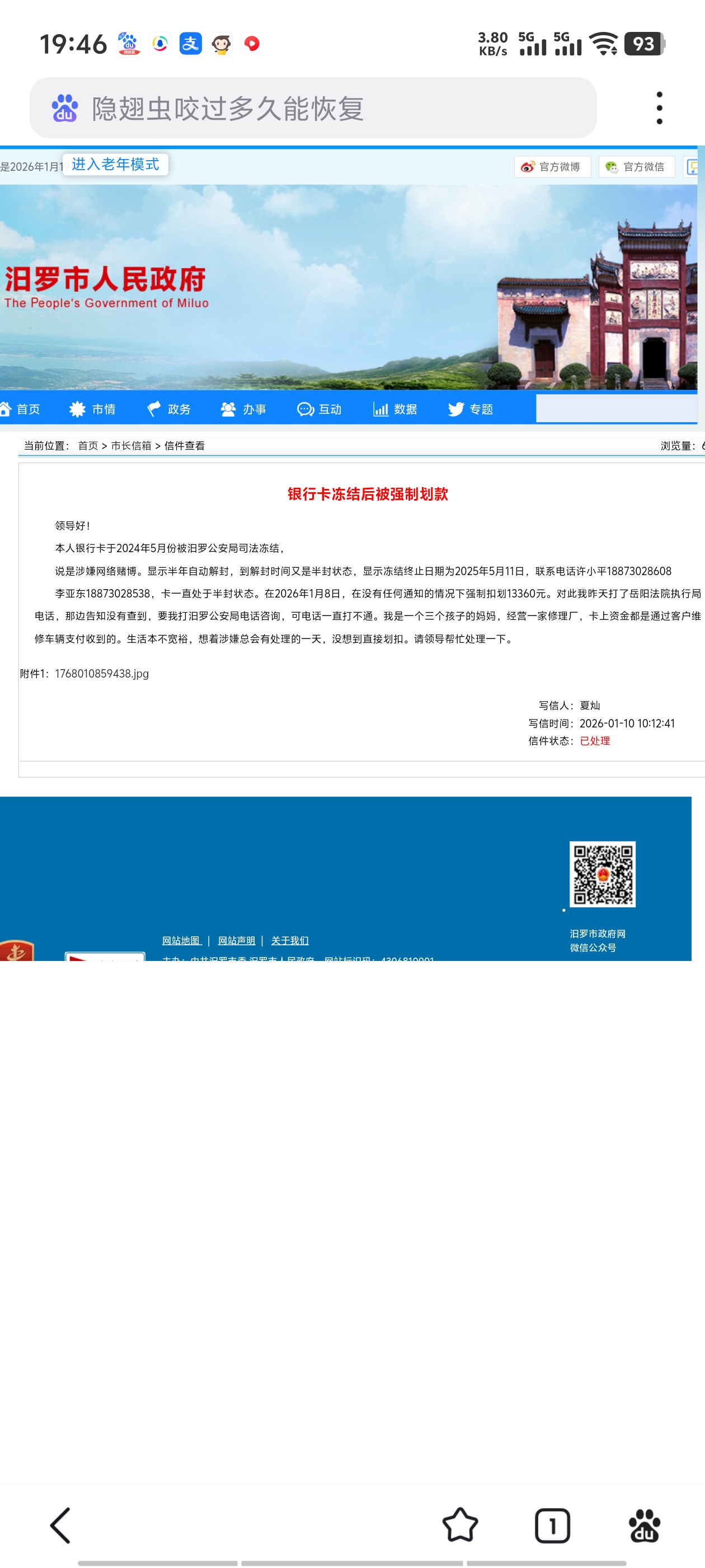 | 回复内容: | 网友: 您好!您反映的关于“6.15”专案涉案资金划扣问题的信访事宜,我局已收到您的再次反馈,并高度重视。 经我局“6.15”专案组对您提交的材料及相关情况进行认真核查与集体会商,现已形成初步处理意见:原则同意您提出的执行异议申请。 目前,该处理意见正在依照法定程序,准备提交检察机关、审判机关等相关部门进行后续的联合审查与签字审批。待上述法定审批流程全部完成后,将依法启动对相关资金的返还工作。 专案组民警已通过电话将上述情况告知您,您本人对此处理结果表示满意。 感谢您对案件处理工作的耐心等待与理解配合。我局将严格依法推进后续审批流程。 汨罗市公安局 2026年2月2日 |