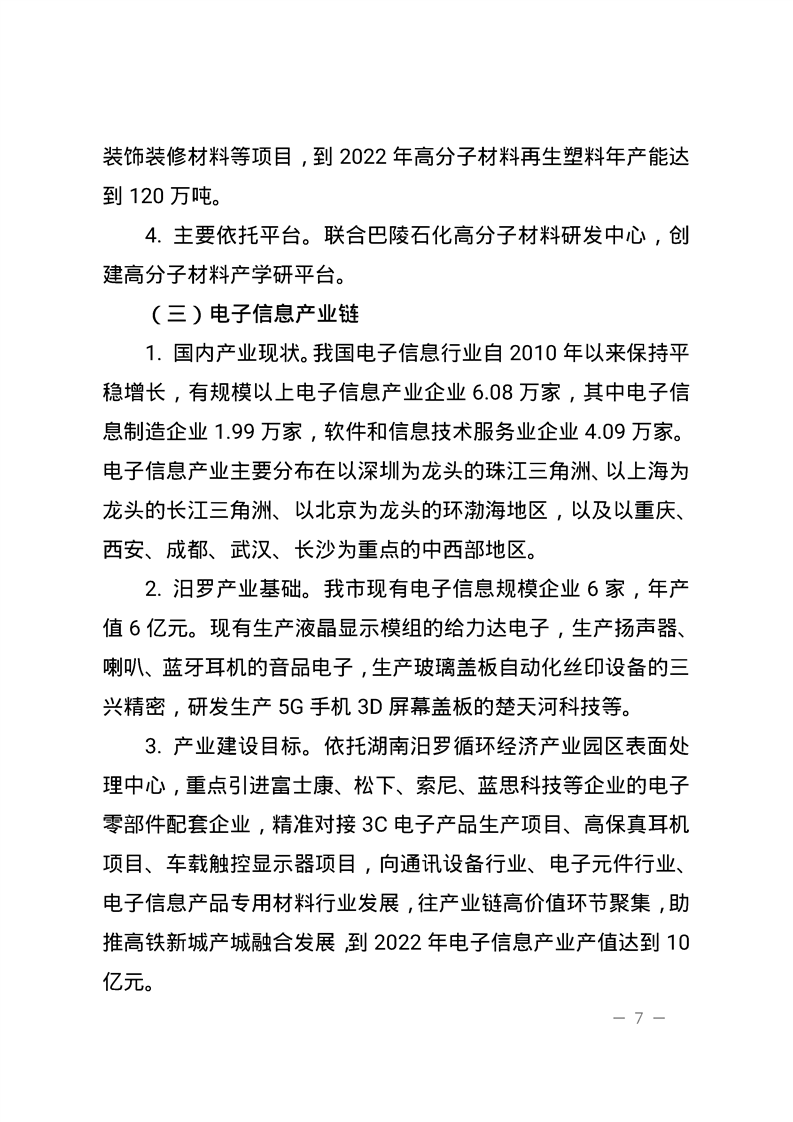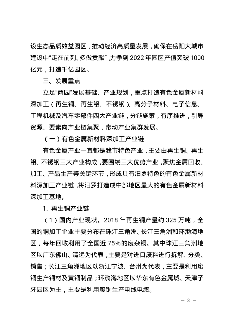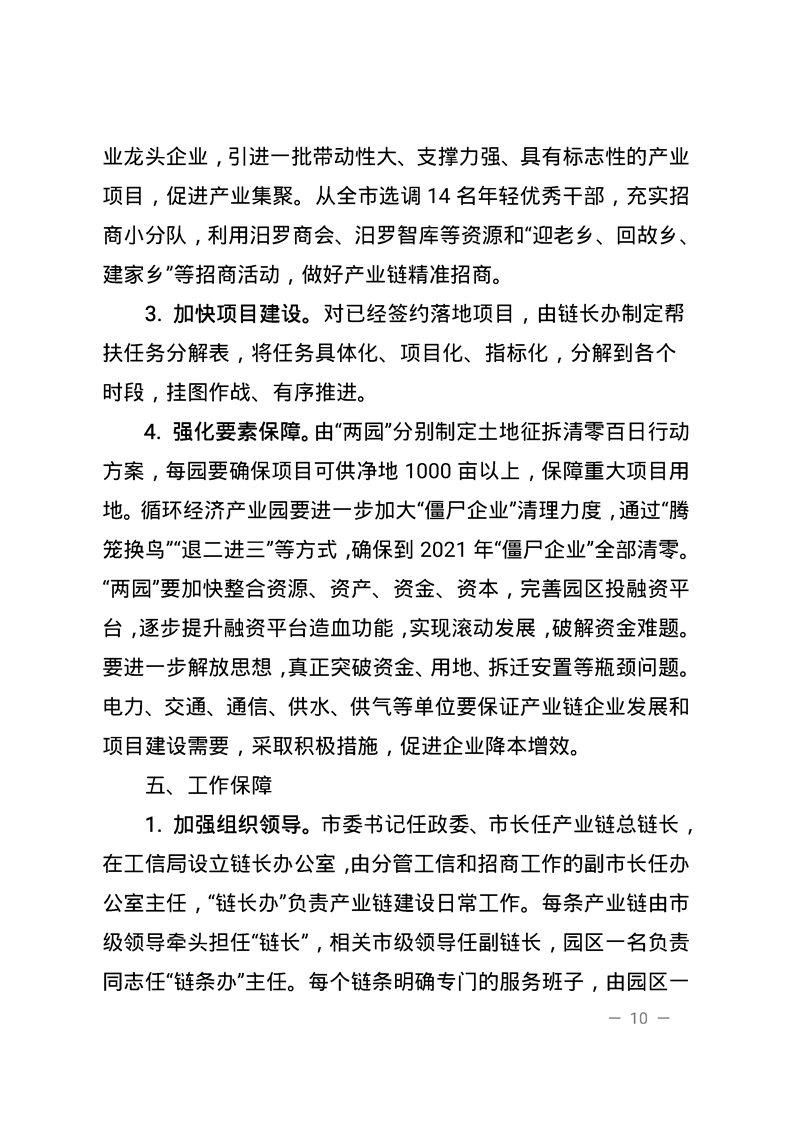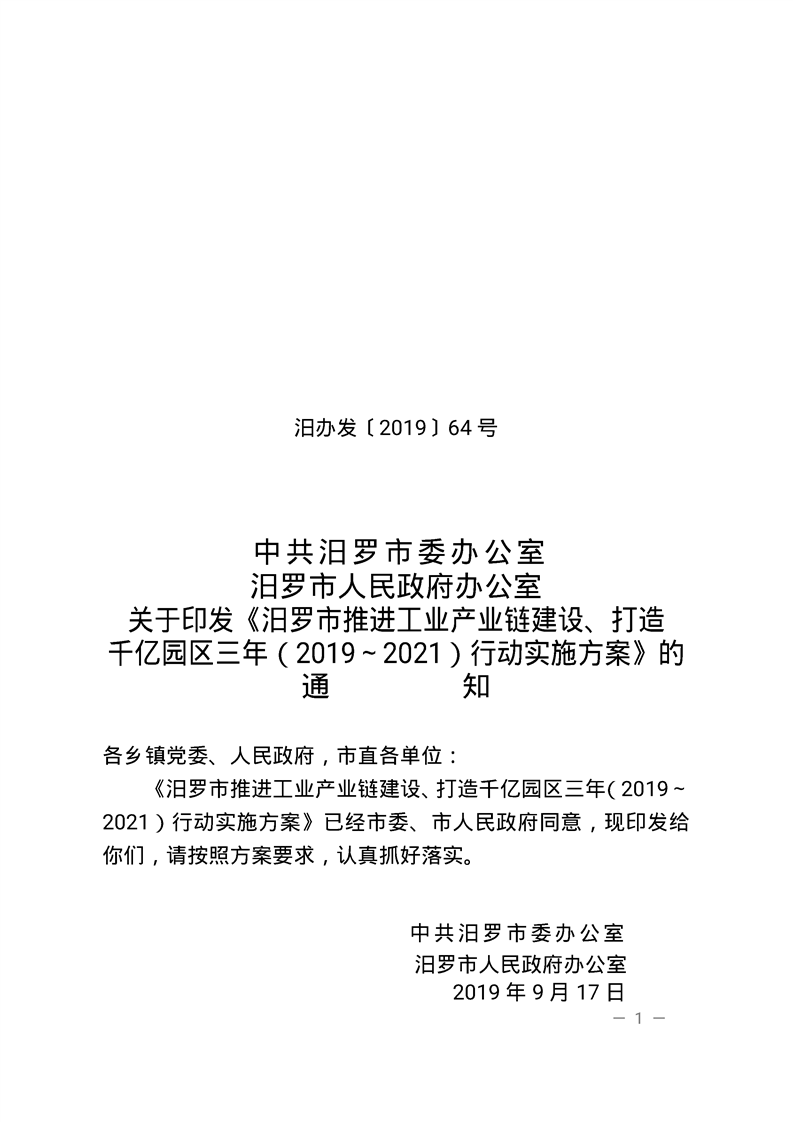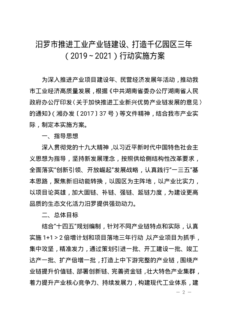 关于印发《汨罗市推进工业产业链建设、打造 千亿园区三年(2019~2021)行动实施方案》的通知