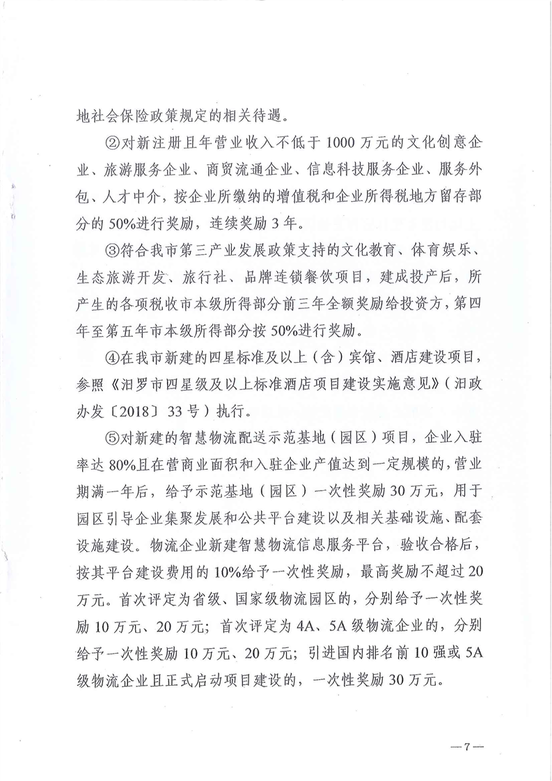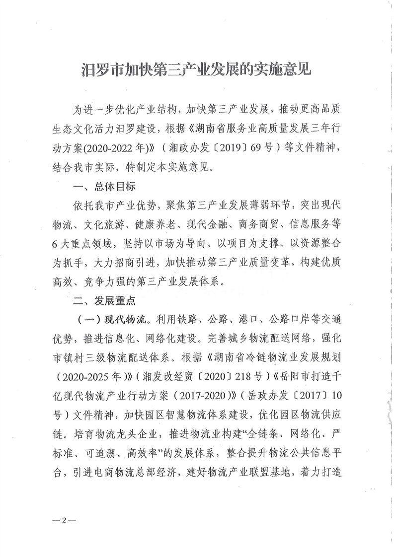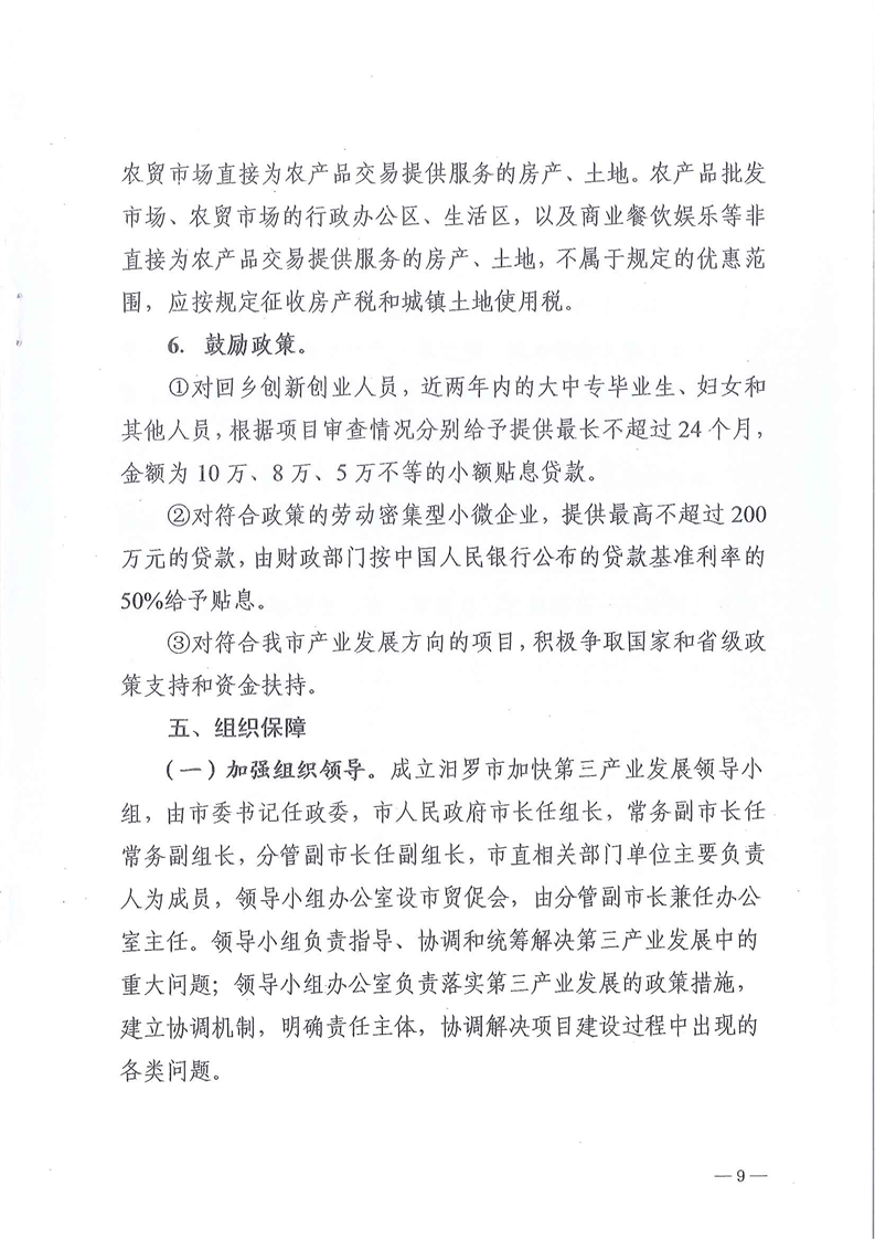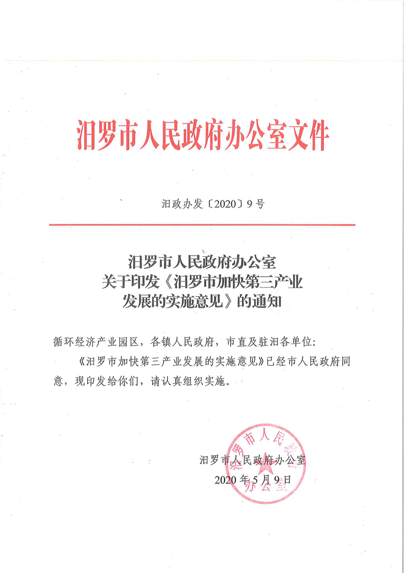 汨罗市人民政府办公室关于印发《汨罗市加快第三产业发展的实施意见》的通知