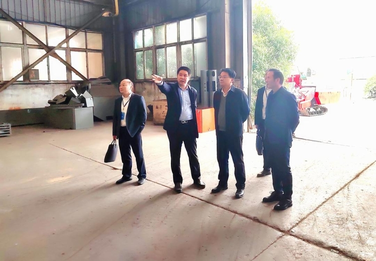 在中天农机生产车间,何厚德仔细察看企业生产运营情况,认真听取企业产品开发、市场销售以及上市进展等工作情况介绍,详细询问企业在发展过程中存在哪些困难和问题,并就企业上市等工作与企业负责人深入交谈。