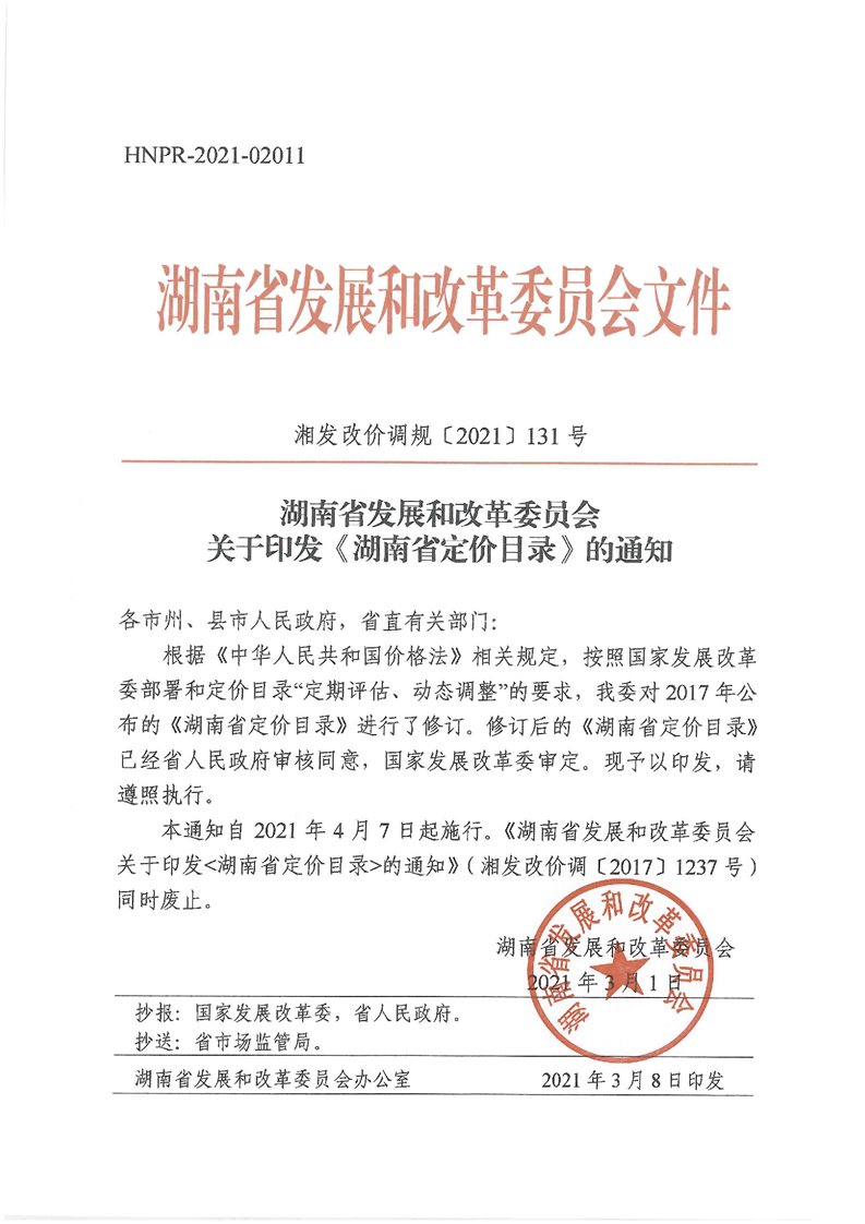 关于印发《湖南省定价目录》的通知